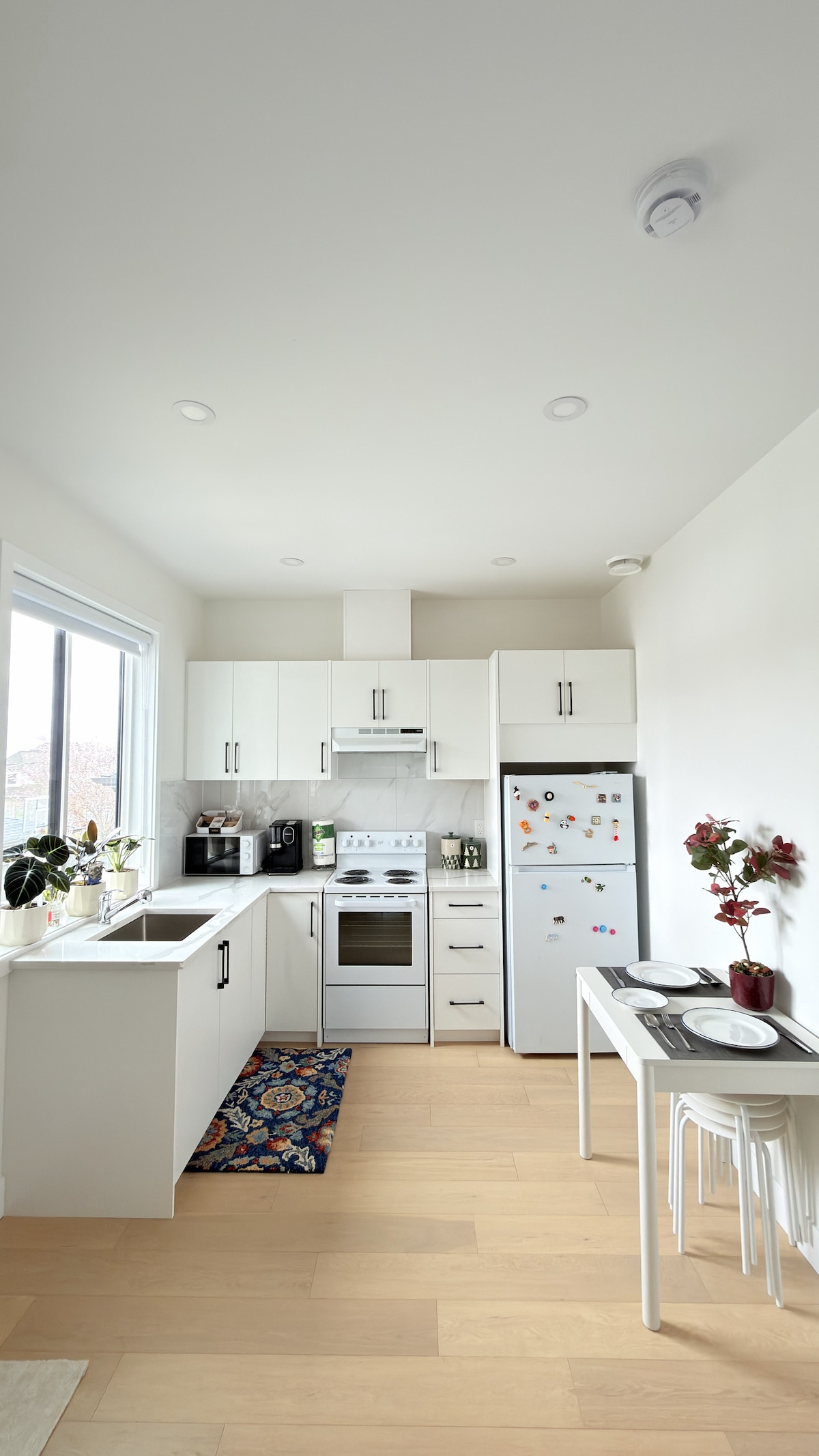 "Wauw. Stop met zoeken! Stijlvol, comfortabel en geweldige locatie." Licentie 00177004 Je moderne schuilplaats is een zorgvuldig ontworpen en nieuw gebouwde luxe suite. Het is open en licht en biedt een gastvrije open haard, een spa-achtige badkamer met een bad en een regendouchekop en een volledig uitgeruste kokskeuken. Familiebuurt, 1/2 blok lopen van het lokale park en natuurpaden Voorzieningen omvatten: -50" Smart TV met Crave, Netflix en CBC Gem - Snel glasvezelinternet - Fantastische bibliotheek