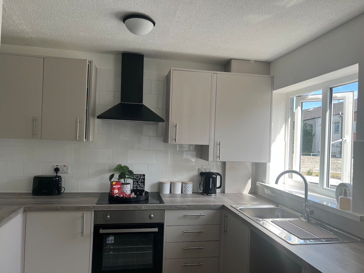 Schoon en modern huis met 2 bedden Gelegen in een rustige woonwijk, maar heeft goede toegang tot Manchester en verbindingen met Liverpool en het Lake District. Er zijn pubs op 3-4 minuten rijden en 3 minuten rijden naar verschillende supermarkten. Perfect voor gezinnen, vrienden, vakantiegangers, groepen, zakenreizigers, aannemers. Lounge met eettafel en 65inch smart-tv. De kamers hebben een kingsize bed en een tweepersoonsbed. Unieke stijlvolle badkamer en goed uitgeruste keuken 😊