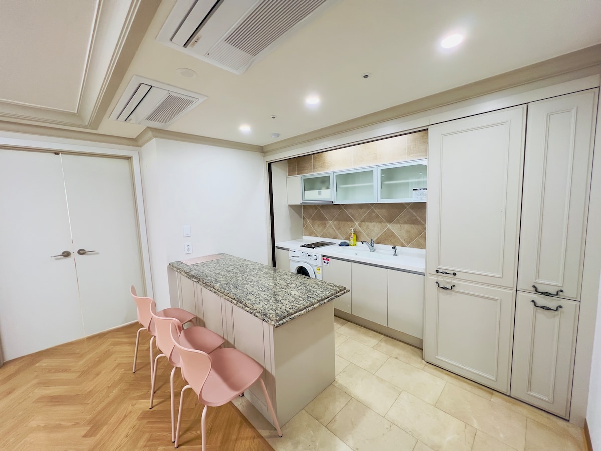 - Precies voor het station van Jagalchi. Het ligt direct voor een restaurant en een supermarkt. Het is erg schoon met het beste interieur. - Er is een bed, beddengoed, bestek, tv (Netflix beschikbaar). - queensize bed (2-persoons bed) -Capsule koffie is aanwezig. - Dit is een contactloos in- en uitchecken. - Droger, krultang, shampoo, conditioner, tandenborstel, tandpasta en lotion zijn aanwezig. - Waterzuiveraar. IJs in de vriezer - Gebruik de openbare parkeerplaats voor de deur om te parkeren. Parkeerkosten zijn betaald (10.000 won per dag) - Laat het ons van tevoren weten over vroeg inchecken en laat uitchecken (extra kosten) - Bagage-opslag beschikbaar. Laat het me van tevoren weten bij het opslaan van bagage