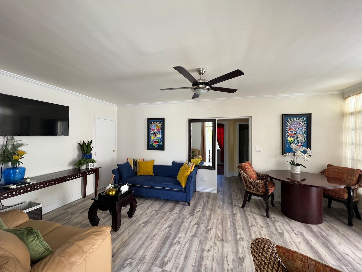 Dinon's Eden is conveniently located in tranquil Cable Beach, the heart of Bahamar's backyard. Nestled among mature, lush, native fruit trees, this cozy 1 bedroom studio is nicely appointed and stylish with access to a shared picturesque deck and pool. The beaches, pharmacy, food stores, hotels, banks, and restaurants are all a stroll away. Dinon's Abode, also a fully equipped 1 bedroom studio, is located on the same property across the courtyard from Dinon's Eden and may be booked together...