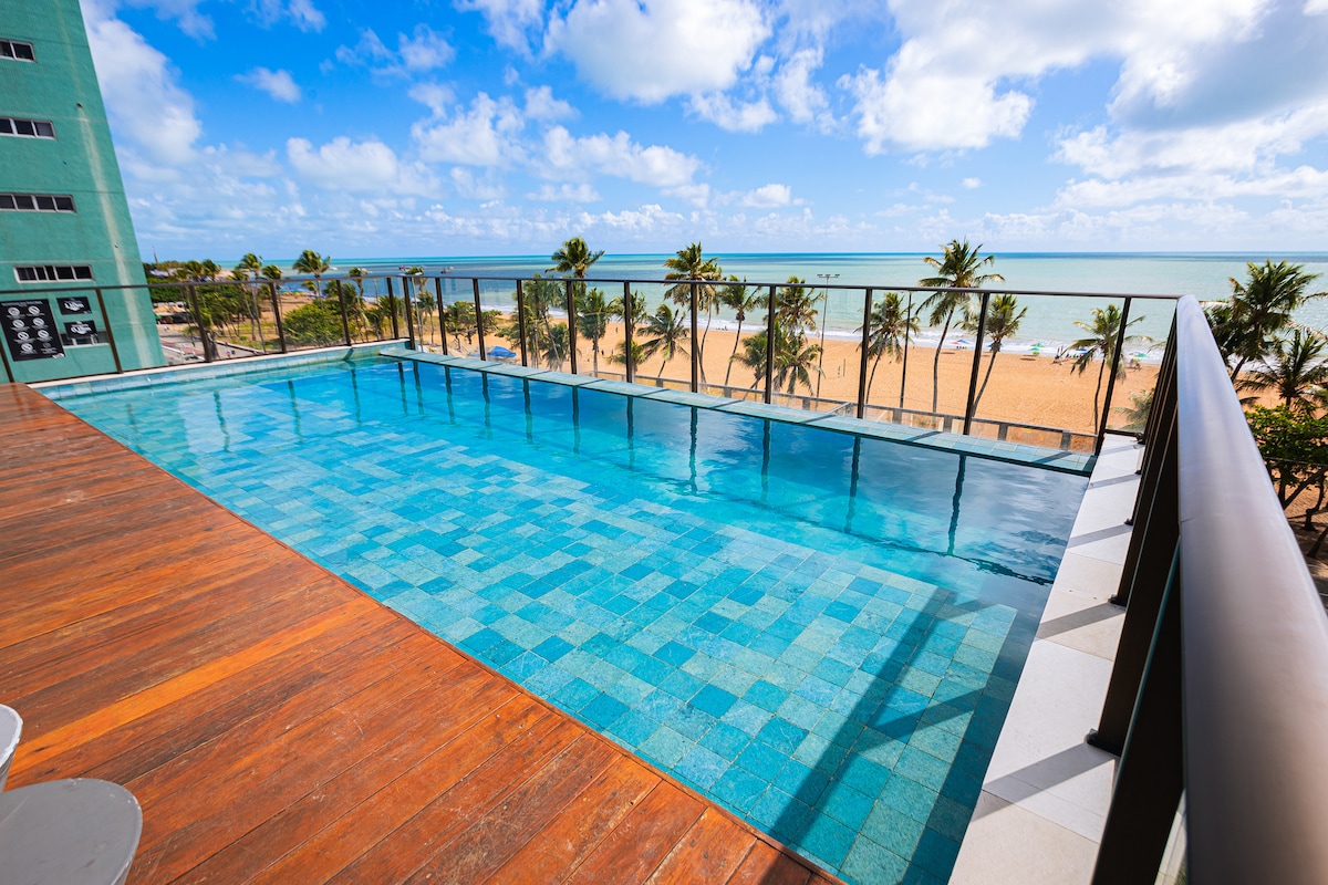 NIEUWE flat ontworpen voor je beste ervaring op een van de mooiste stranden in João Pessoa. WIJ ZIJN GEEN HOTELKETEN! We hebben een balkon met uitzicht op het strand van Cabo Branco en je kunt gebruikmaken van: - Bed- en badlinnen - Wifi - een smart-tv - Volledige keuken (Minibar, fornuis, micro, espressokoffiezetapparaat, sandwichmachine, borden, glazen, glazen, bestek, enz.) - Airconditioning - gemeenschappelijke ruimte (zwembad, restaurant, wasserette, overdekte garage, ijsmachine) - 24-uursreceptie