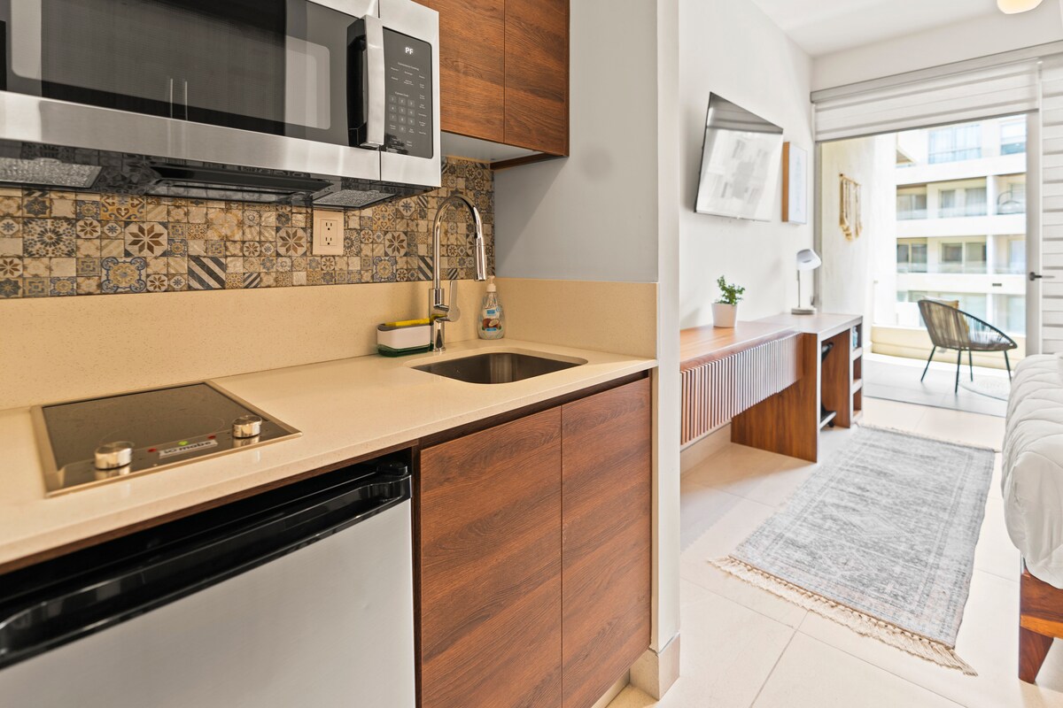 Cabo Marina Loft is je toevluchtsoord in het hart van Cabo San Lucas, 3 blokken van de jachthaven en het centrum, met de beste plekken voor je entertainment Open, lichte en zeer gezellige ruimte. Queensize bed, kast, moderne keuken Glazen deuren leiden naar het terras met uitzicht op het zwembad, voor een ontbijt buiten, werken met je laptop of ontspannen Allemaal ontworpen voor jouw absolute comfort: eenvoudig en modern design, natuurlijk licht, airconditioning, de details die het verschil maken