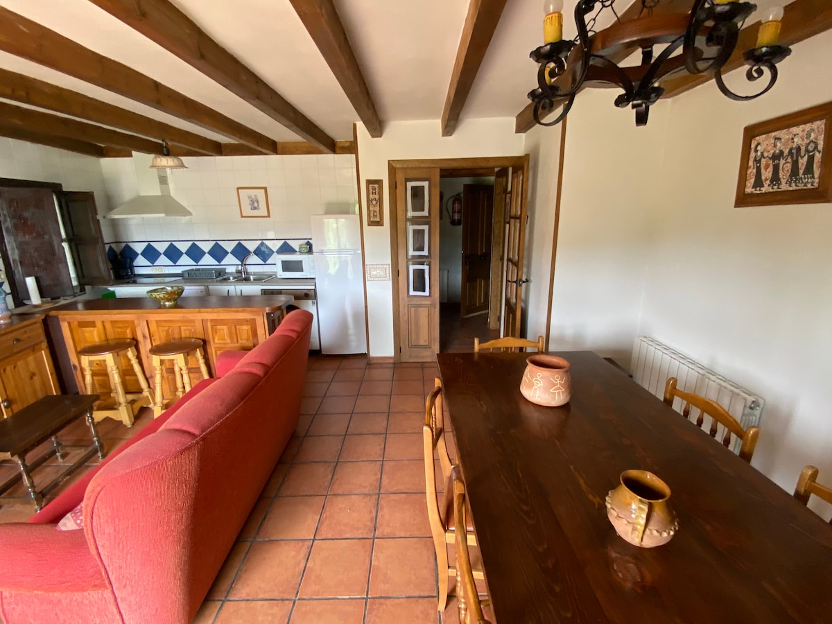 Het huis is in 2004 gerenoveerd en is ingericht met lokale bossen, handwerk en grondbewerkingsgereedschappen. We hebben nog een tweelinghuis dat geschikt is voor maximaal 12 personen. Het huis heeft drie tweepersoonskamers, twee badkamers en een prachtige eetkamer met keuken en houtkachel (brandhout is voorzien voor het hele verblijf). Vanuit de woonkamer heeft u toegang tot een groot terras van ongeveer 30 m2, met uitzicht op het massief van Gredos en La Covatilla.