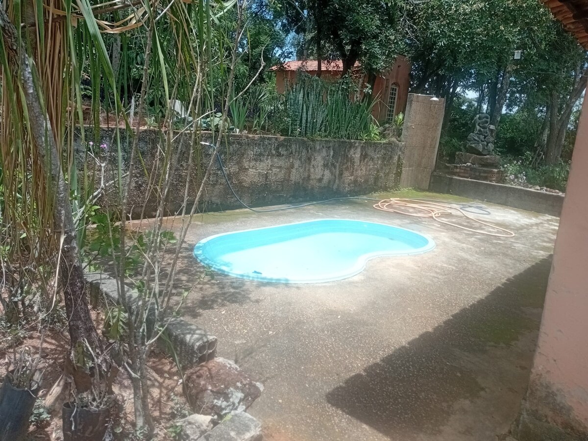 Het Huis van de Mineiras-bergen biedt ruimte voor kinderen om rond te rennen en netten voor volwassenen om te ontspannen op het geluid van vogels. Basismeubelen en decoratie. 360º terras met uitzicht op de stad en de bergen van Minas Gerais.