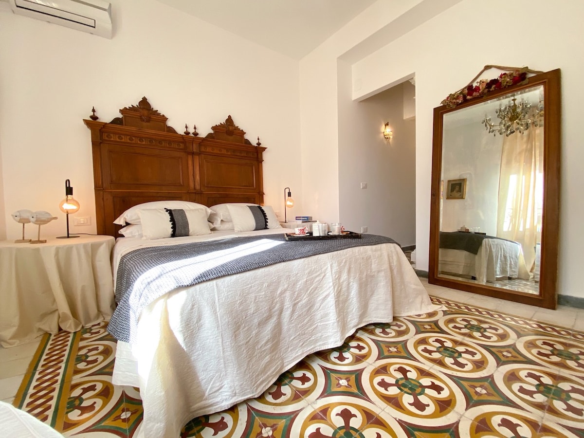 Vanaf de ingang heb je toegang tot de woonkamer, uitgerust met een kitchenette, tafel en stoelen, en twee banken. Vanaf hier heb je toegang tot de tweepersoonskamer met privébadkamer. De kamers hebben airconditioning. Voor de binnenplaats is een panoramisch terras met uitzicht op zee. Boven een heuvel en weg van het lawaai van het verkeer, is de B&B perfect om te ontspannen. Het ontbijt, bij de prijs inbegrepen, wordt geserveerd op de veranda met een panoramisch uitzicht op zee.