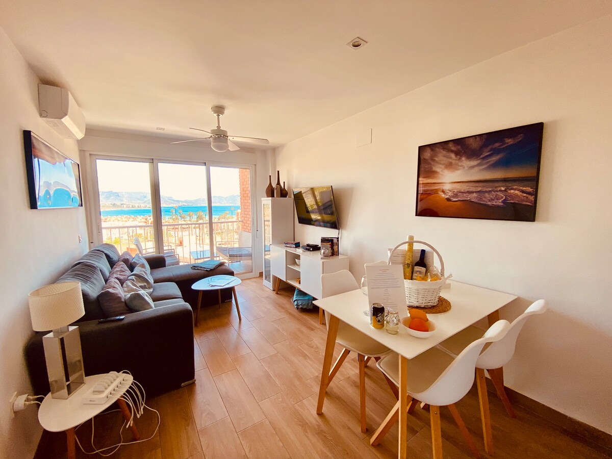 Geniet van ons mediterrane balkon waar je kunt ontspannen met het geluid van de zee in een gezellig en modern huis. Het ligt precies aan het water en je kunt comfortabel direct aankomen in een zwemkleding en in de zomer een verfrissende duik nemen. De accommodatie is gelegen op de vierde verdieping en biedt een panoramisch en adembenemend uitzicht op het hoofdstrand van Eagles en de kust van Murcia, die een blauwe vlag heeft, toegang met douches en beveiligingsservice door het Spaanse Rode Kruis.