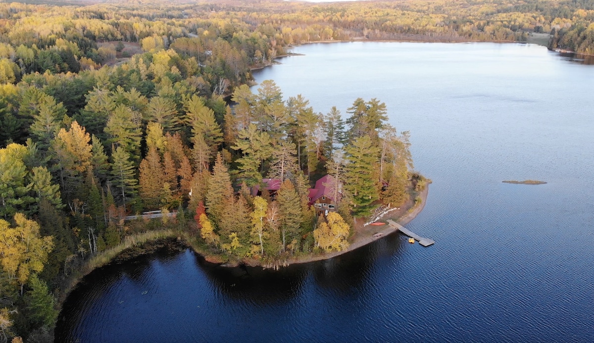 Geniet van dit luxe chalet met moderne architectuur op een privéschiereiland op 1 uur en 10 minuten van Ottawa. Geniet van het adembenemende uitzicht op Lake Hughes, waar je kunt vissen en zwemmen. Ontdek de magie van sneeuwscooteren, skiën (45 min), kampvuren onder de sterren en wakker worden onder de honderd jaar oude dennenbomen, hier omringt water en natuur je! Het is ook een kinderparadijs: zandgebied, speelstructuur, schommel. Maak onvergetelijke herinneringen. CITQ 315118