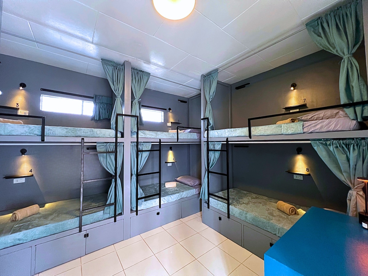 Verblijf in onze Smart Single Bunk — ideaal voor soloreizigers, vriendengroepen of zelfs gezinnen — in een gedeelde slaapzaal met modern design en Portugese charme. Elk gezellig hoekje is voorzien van verduisteringsgordijnen, zachte verlichting, gadgetrand, oplaadpoort, kledingrek en handdoek. Geniet van een schone buitenbadkamer met openluchtdouche en zonovergoten toilet - een verfrissende eilandervaring. Ontdek de natuurlijke schoonheid van Coron vanuit een slimme, stijlvolle uitvalbasis in het hart van de stad.