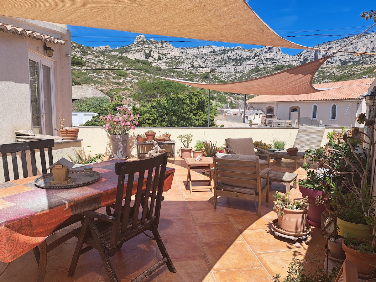 In Les Goudes, mooie hut met terras dicht bij de zee