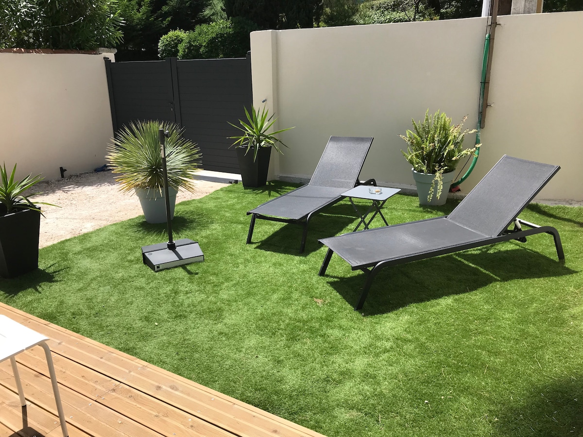 Tweekamer vrijstaande woning van prachtige afmetingen, gastvrij met een eigen tuin. Groot houten terras. Het is gelegen in het hart van de Provence en op minder dan 50 stappen van de kust, in een residentiële en rustige omgeving, dicht bij het stadscentrum Zelf inchecken Vezels en airconditioning Alleen voor 2 volwassenen, vergezeld van een of twee kinderen Ministeriële ranglijst met drie sterren in de gemeubileerde categorie toerisme uitgereikt door Provence Tourisme