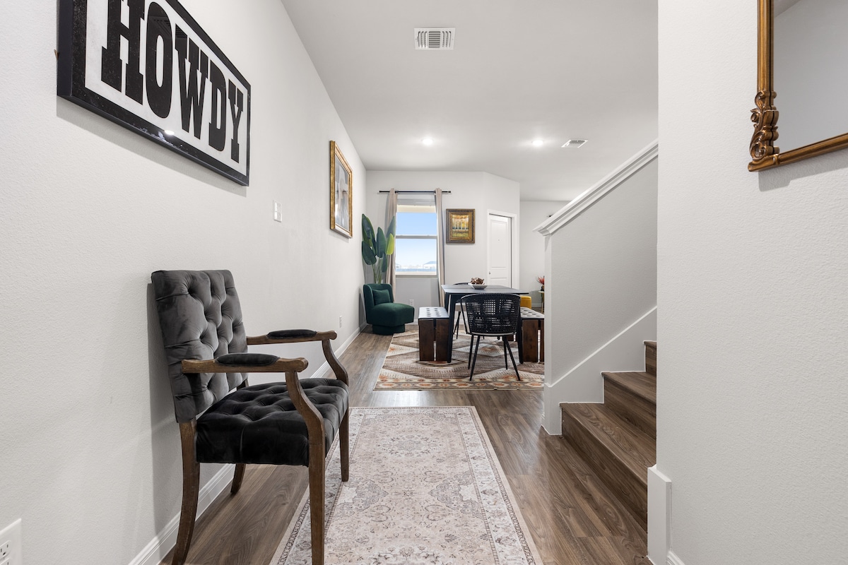 Perfect voor gezinnen, thuiswerkers en grote groepen — onze moderne woning Kyle met 4 slaapkamers biedt plaats aan 8 personen en beschikt over een volledig uitgeruste keuken, een speelkamer en snelle wifi. EV-oplader van niveau 2 op het terrein. 30 minuten van het centrum van Austin, in de buurt van de winkelcentra van San Marcos en avonturen in Texas State en Hill Country. Toegang tot het gemeenschappelijke zwembad inbegrepen. 🏎️ Klaar voor COTA: ultieme racebasis met een geheime route naar het circuit! Zie het gedeelte ‘Accommodatie’ voor informatie over de dag van de race.