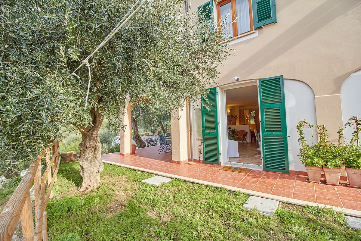 TWEE-KAMER APPARTEMENT IN AGRITURISMO MET EIGEN TUIN agriturismo "A Ca Vegia" omgeven door de natuur op slechts 8 km van de ZEE van Finale Ligure. In de buurt van de boerderij zijn er MTB ROUTES, WANDELROUTES, KLIMMEN VAN DE LIGURISCHE OUTDOOR FINALE gebied. Aromatische kruiden zijn het belangrijkste gewas van de boerderij. Buiten de boerderij zijn er ook een aantal volgzame en leuke dieren: een hond genaamd "Bho" en schattige ezels genaamd "Marina, Camilla, Cleo".