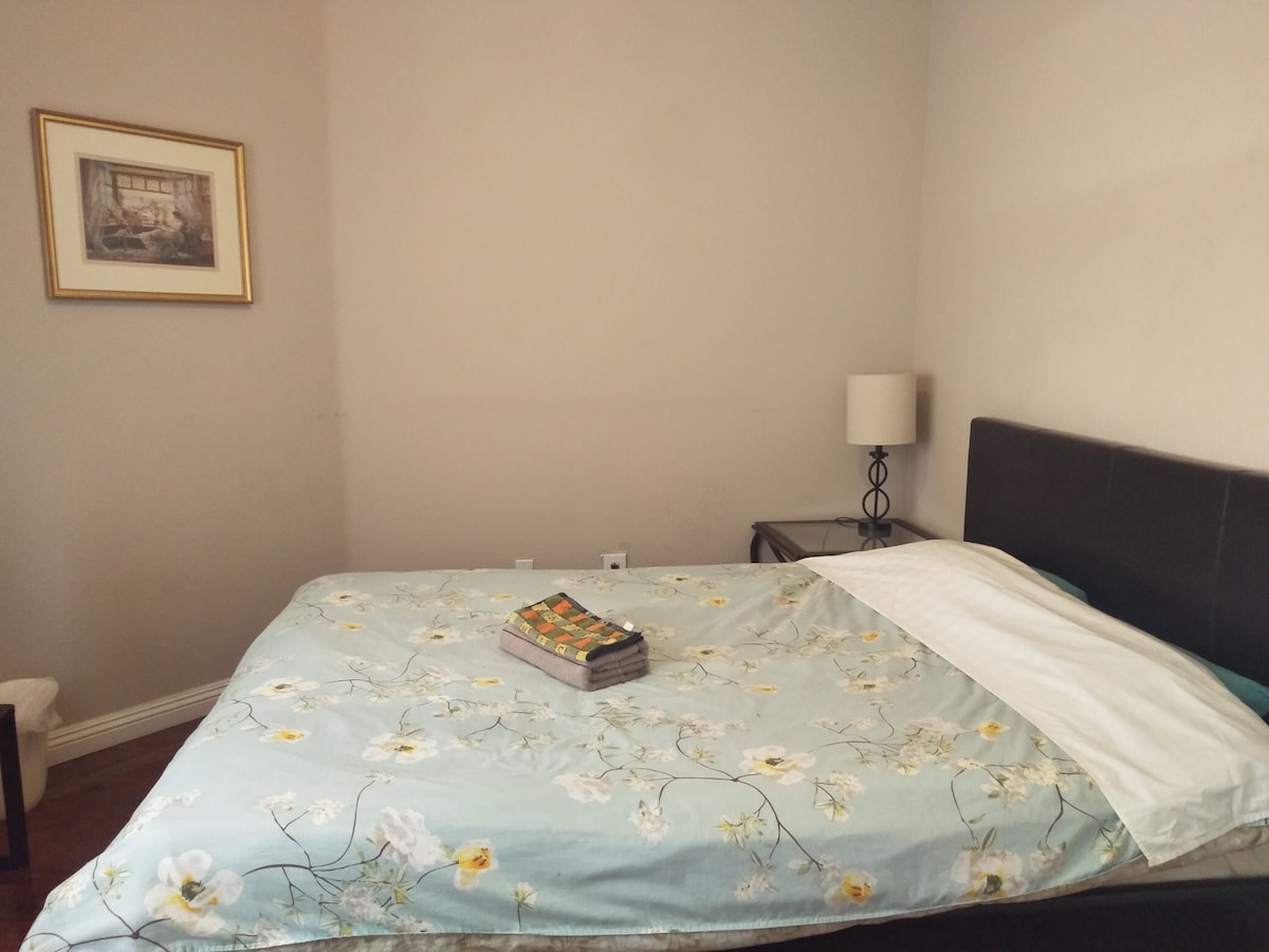 Vergeet je zorgen in deze serene ruimte. Dit is een privékamer in een huis met vier slaapkamers en twee gedeelde toiletten. Deze kamer heeft veel ruimte, met een queensize bed en een 43-inch smart-tv. Dit onlangs gerenoveerde huis heeft alles wat je nodig hebt, waaronder een volledig uitgeruste wasruimte en een keuken met alle kookgerei - de patio in de achtertuin met tafel en stoelen om te ontspannen. De woonkamer heeft een 50-inch smart-tv met bank en loveseat voor je comfort - veel restaurants op 5 minuten rijden.