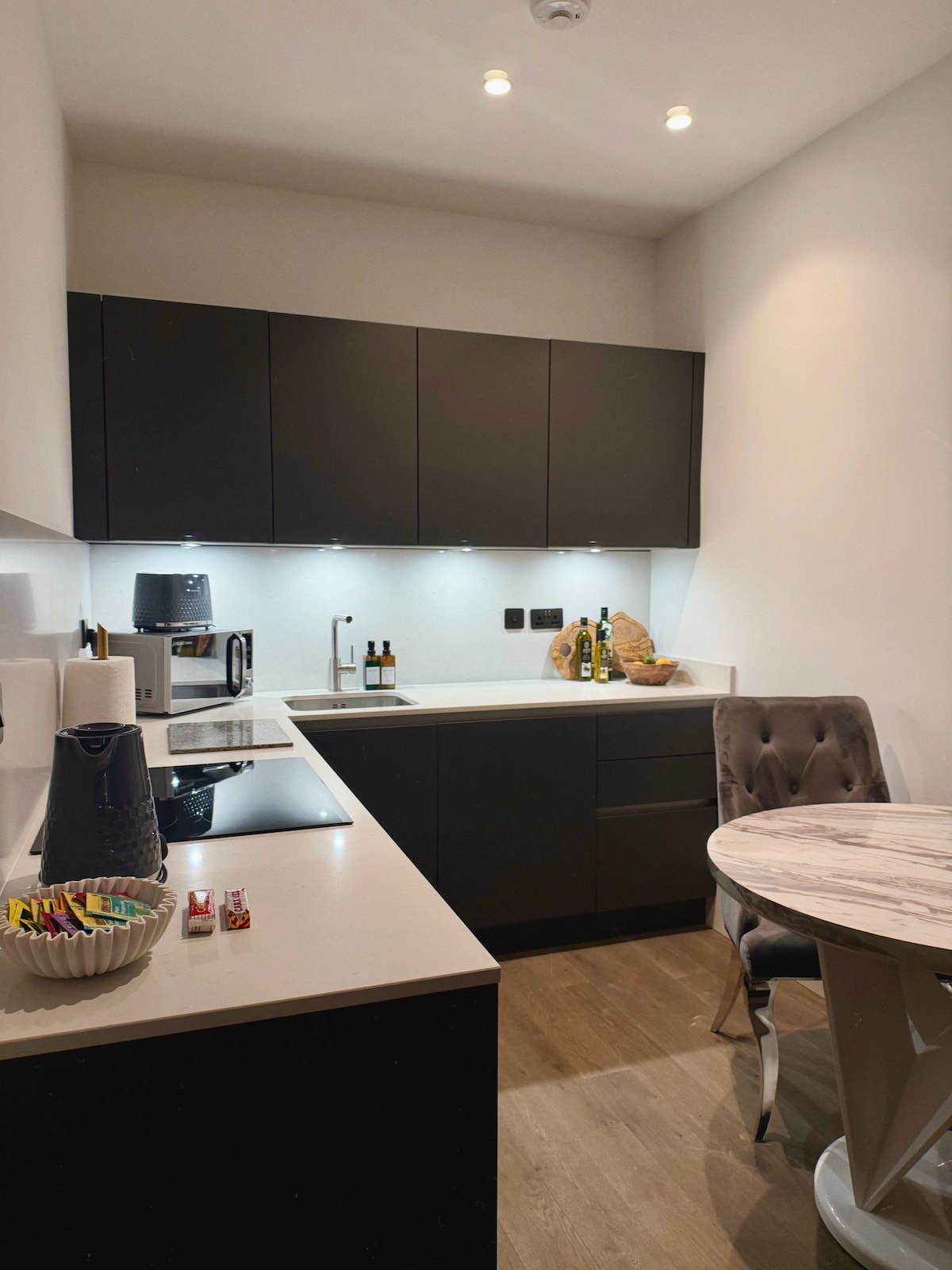 Welkom in het luxe 1BR 1Bath-uitje genesteld in de chique centrale buurt van West End. Dompel jezelf onder in de high-end sfeer van onze gloednieuwe stadsoase en geniet van de weelderige omgeving terwijl je op slechts een paar minuten afstand bent van beroemde historische bezienswaardigheden, Edinburgh Castle, Royal Mile, Princes Street en spannende attracties. ✔ Comfortabele slaapkamer met kingsize bed ✔ Open Design Living ✔ Volledig uitgeruste keuken ✔ Luxe spa-badkamer Patio ✔ aan de voorkant ✔ Smart-tv's ✔ Snelle wifi