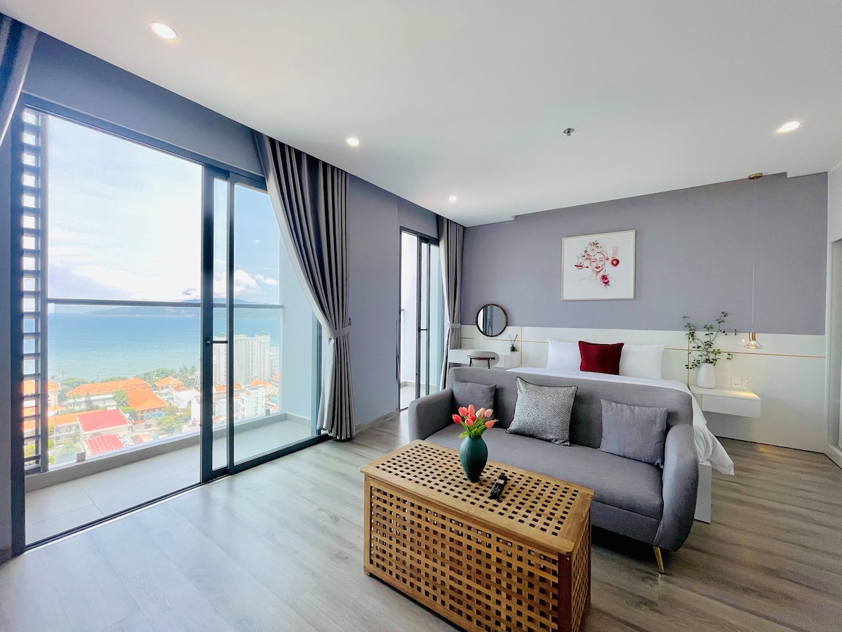 An sea-view and City-view apartment 52 sqm which is located in center of Nha Trang City and is at the airport bus stop. This apartment is inside a modern building with shopping mall and is just 2 minutes walk to beach, cinemas, supermarket, pubs, night market, 5-star hotels such as I ntercontinental, Sheraton, Sunrise,.. We have full funiture and convenient. Really wonderful and enjoy your vacation with really good air.