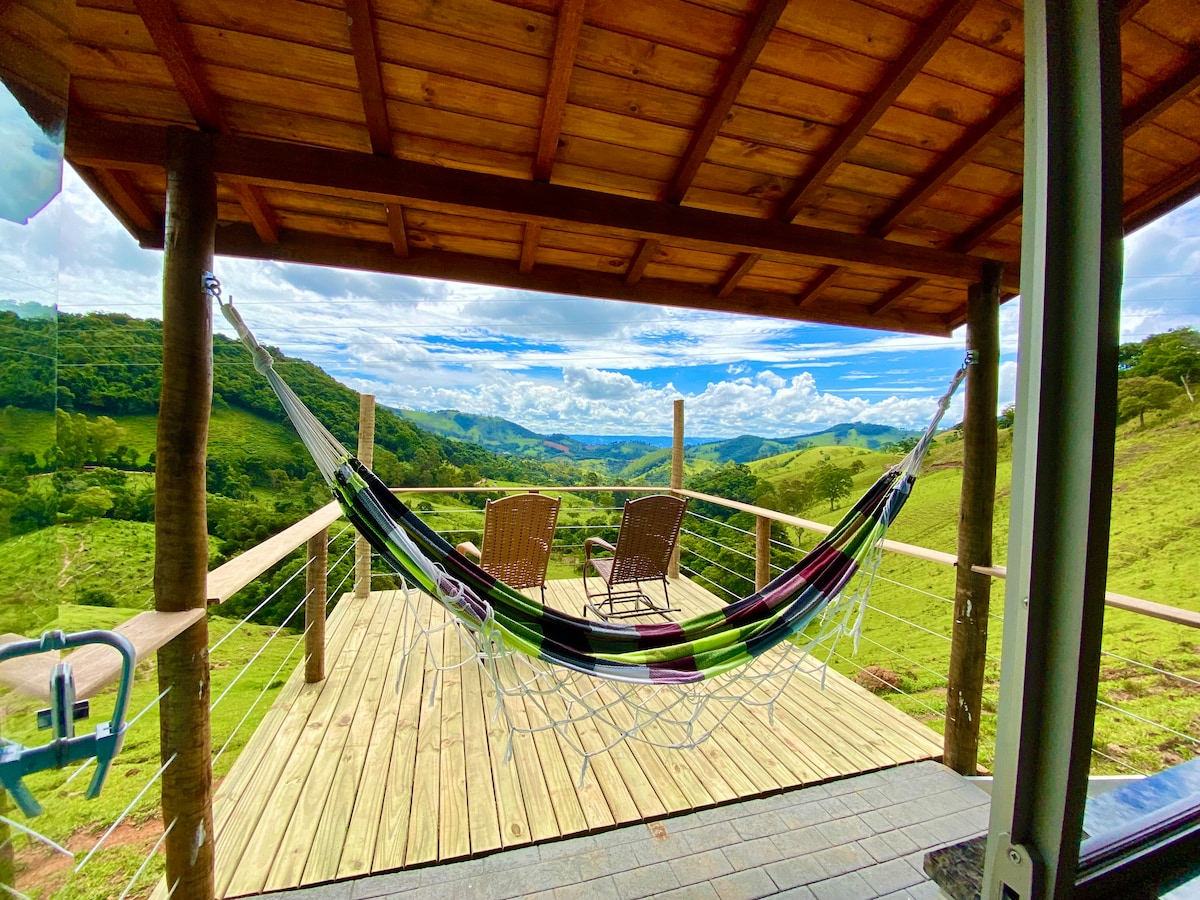 Ontdek de charme van Serra da Mantiqueira in deze hut die is ontworpen zodat je de zonsopgang kunt aanschouwen zonder uit bed te hoeven stappen. Kom tot rust in onze verwarmde spa, sterrenkijken op het boven- en swingende netwerk. De cabana heeft een geïntegreerde kamer met een knus queensize bed. In de woonkamer/keuken biedt een super comfortabele futon plaats aan nog twee gasten, waardoor de ervaring ideaal is voor gezinnen. De accommodatie heeft ook paden en kleine watervallen.
