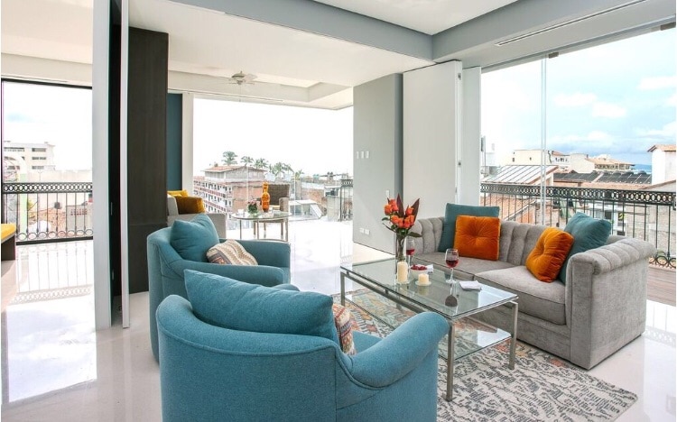 Dit moderne gloednieuwe appartement beschikt over 2 slaapkamers, 3 badkamers en een studio, geschikt voor maximaal 6 gasten! Het hoekbalkon biedt een prachtig uitzicht op het zwembad, de golfbaan en de zonsondergangen in Puerto Vallarta. Gelegen in de gloednieuwe VGolf-toren, die de perfecte omgeving biedt voor het buitenleven en ontspanning. De open woonkamer combineert eet- en woonruimtes en is volledig uitgerust om een comfortabel en fijn verblijf te garanderen. We kijken uit naar je aanstaande verblijf!