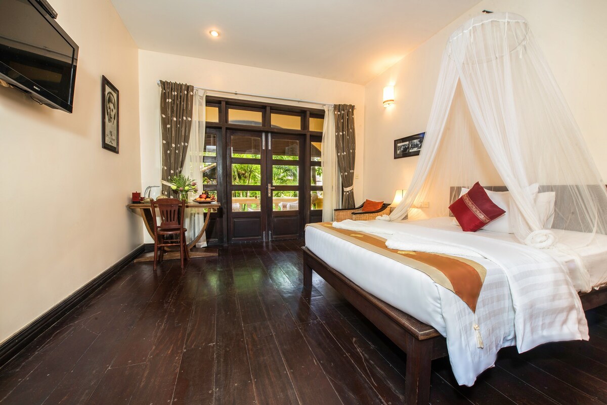 Ervaar de tijdloze elegantie van onze Franse koloniale geïnspireerde villa, gelegen te midden van weelderige groene tuinen en met klassieke designelementen. Elke villakamer biedt een privéretraite, terwijl onze gedeelde zithoeken ontspanning uitnodigen te midden van de natuur. Ideaal gelegen op een steenworp afstand van het stadscentrum en Pub Street, geniet je van toegang tot ons verfrissende zwembad, dagelijks ontbijt en turndownservice. Ontdek de perfecte mix van historische charme en modern comfort in ons unieke toevluchtsoord.