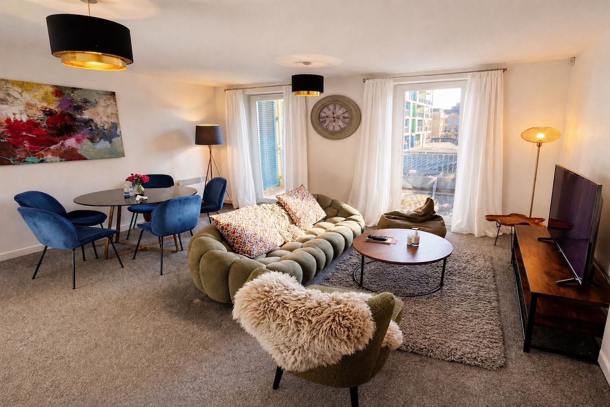 - KINGSIZE bed - slaapbank - 5 minuten lopen - CENTRUM - Volledig ingerichte keuken: EERSTEKLAS beddengoed en handdoeken - Smart TV + Netflix, BBC Iplayer, ITV Hub & All4 - SUPERSNEL WiFi - Alexa - Toiletartikelen: douchegel + shampoo + conditioner - 4 minuten lopen - PARKEREN (£ 19,50 per dag)