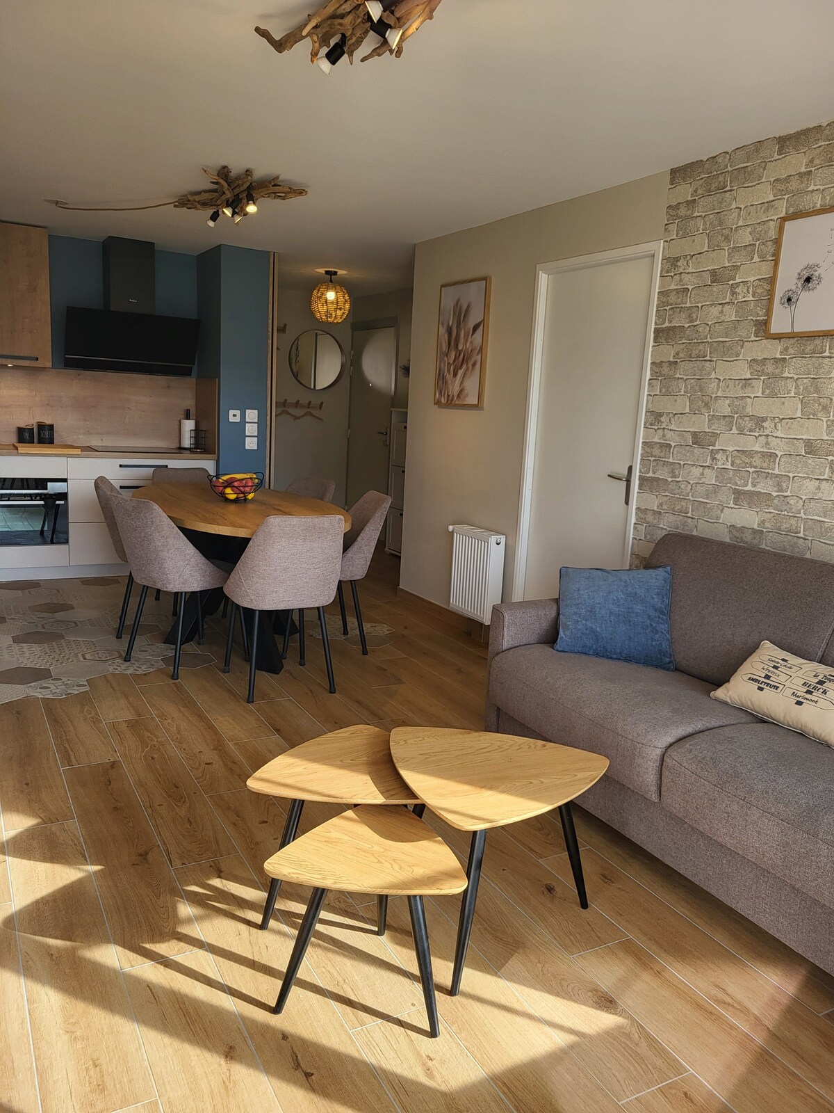 Ontspan in dit rustige en stijlvolle gelijkvloerse appartement in de buurt van de zee. Om je het beste te verwelkomen, bestaat dit appartement uit: Een keuken met oven, magnetron, vaatwasser, koelkast met kleine vriezer, inductiekookplaat, broodrooster, waterkoker, Mr. Croque-apparaat, traditioneel koffiezetapparaat. 📺 TV-slaapkamer: bed 140 x 190 (beddengoed aanwezig) Slaapbank in de woonkamer: 140 x 190 (beddengoed aanwezig) Kinderen: opklapbaar BBQ-bed + matras + BB-stoel