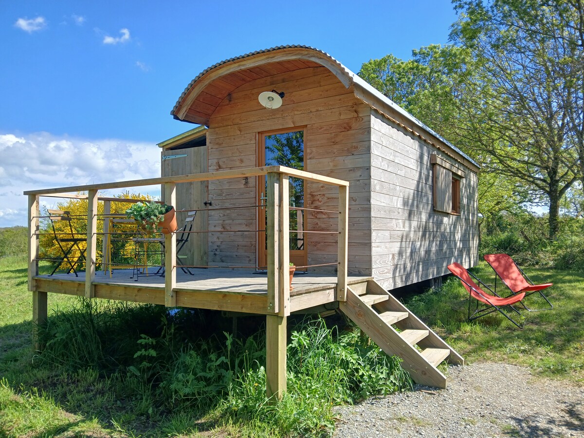 Trailer op een biologische tuinbouwboerderij, tussen Nantes en St Nazaire, dicht bij de as Nantes-Vannes, 30 minuten van de kust. Het is volledig gemaakt van milieuvriendelijke materialen. Het is verwarmd in de winter en kan je het hele jaar door ontvangen. We wilden het net zo comfortabel en mooi als ons huis! Volledig uitgerust (keuken, douche, droog toilet), is het perfect om los te koppelen van het dagelijks leven, te genieten van het uitzicht op de omliggende natuur en te luisteren naar de vogels.