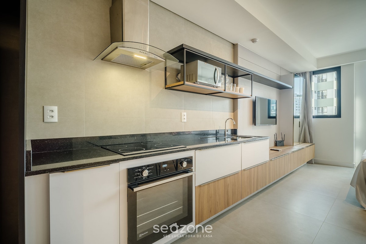Complete studio met panoramisch uitzicht! Deze studio ligt op een bevoorrechte locatie in Trindade en biedt een prachtig uitzicht op de stad. Uitgerust met een queensize bed, airconditioning, een smart-tv, wifi en een volledig uitgeruste keuken. Geniet van de gemeenschappelijke ruimtes, zoals de fitnessruimte en de Zen-ruimte. Slechts een paar minuten van de stranden en met gemakkelijke toegang tot de beste plekken in de stad. Mis de kans niet om je verblijf te boeken in een van de beste plekken in Florianópolis!