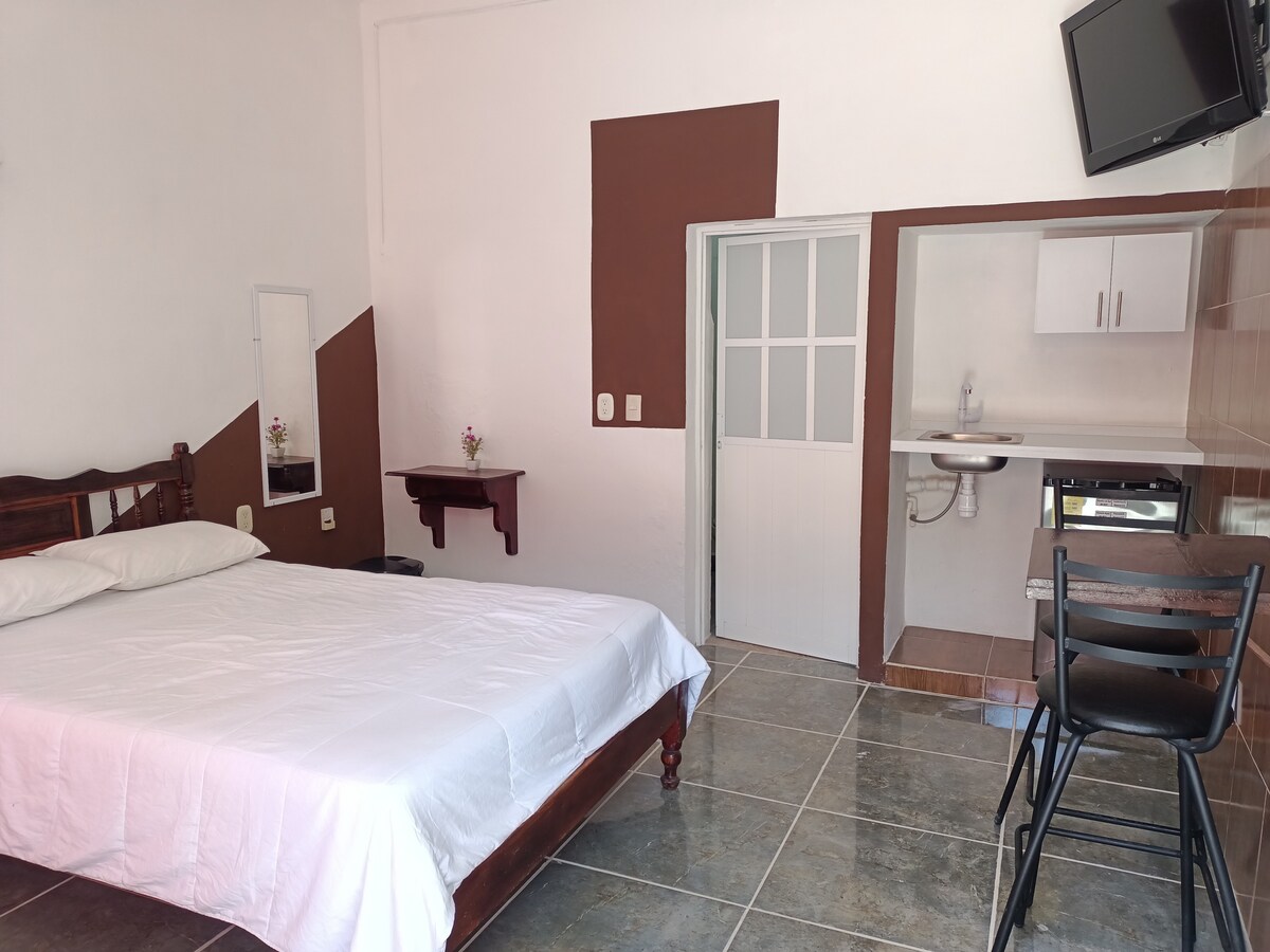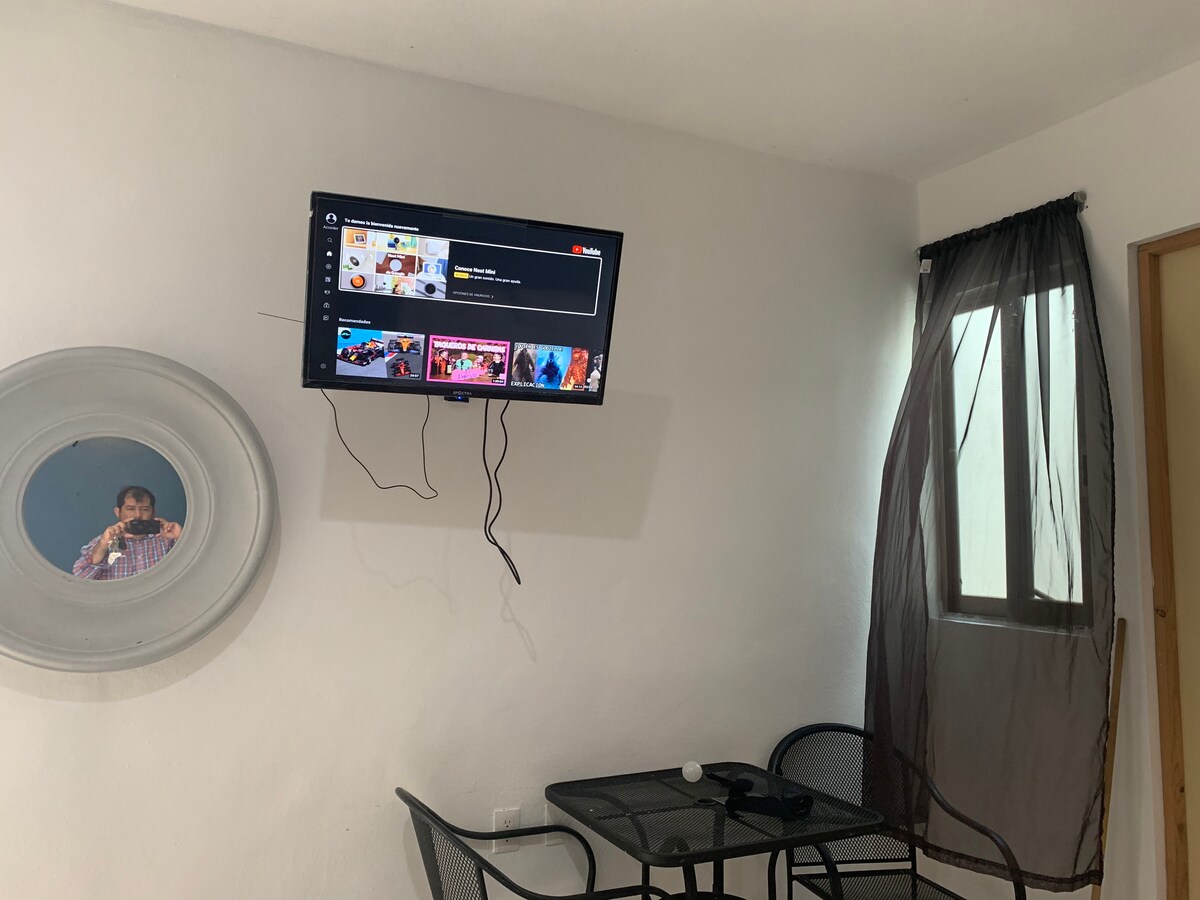 Departamento Privado con Clima Disfruta total privacidad en este espacio con entrada independiente. Cuenta con aire acondicionado, cama matrimonial y ventilador. Para tu entretenimiento, incluye Smart TV con Roku (Netflix y Amazon). Equipado con frigobar, cafetera y tostadora. ¡No salgas al calor! Tenemos un minibar con snacks, refrescos y dulces típicos con costo adicional (pago en efectivo en el lugar). Ideal para disfrutar sin complicaciones. ¡Te esperamos!
