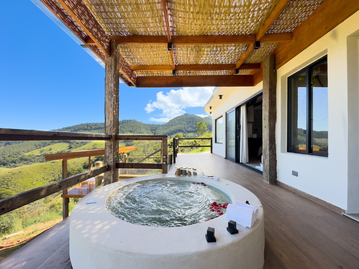Bubbelbad, sauna en uitzicht op de Mantiqueira | Ybityara