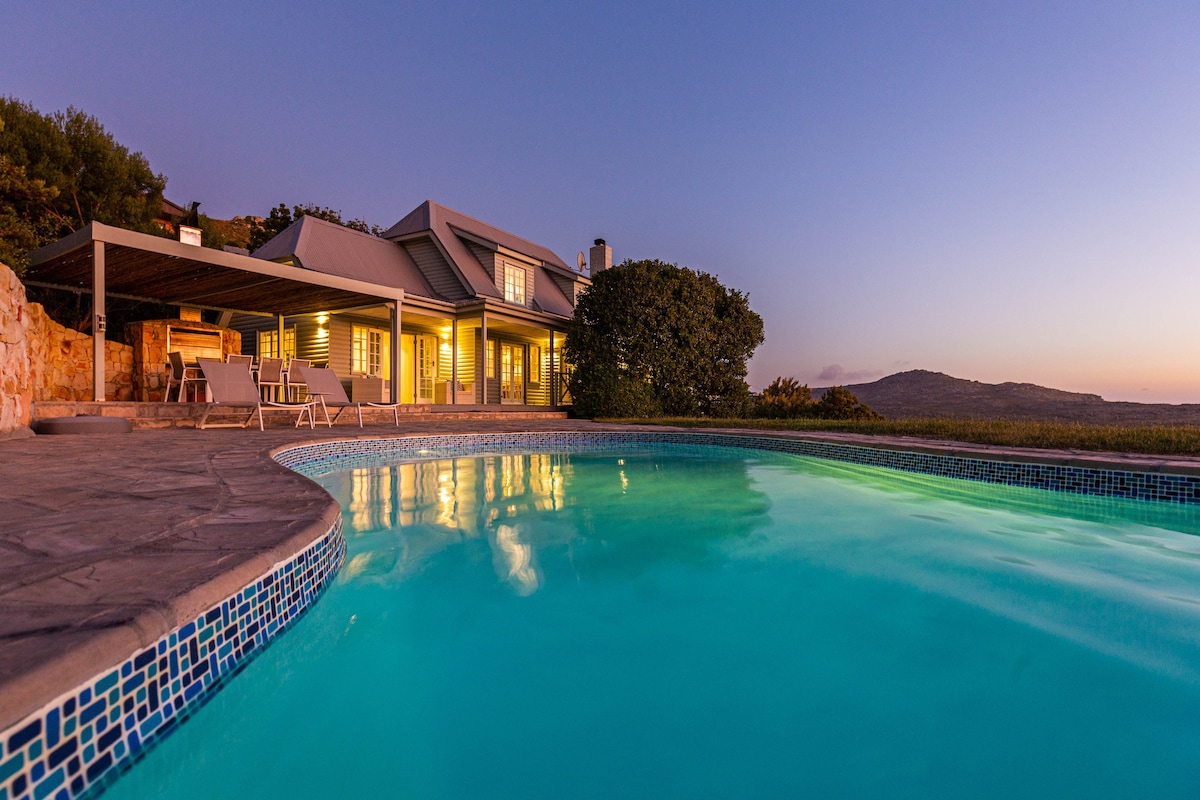 Ontdek ultieme luxe aan zee in deze exclusieve bungalow met 5 slaapkamers, perfect gelegen op slechts een steenworp afstand van het wereldberoemde Clifton Fourth Beach. Deze accommodatie ligt op een toplocatie, beschut tegen de wind, en combineert serene privacy met een adembenemend panoramisch uitzicht op de oceaan en de bergen. Geniet van de zon vanaf het uitgestrekte privéterras, compleet met een zwembad, comfortabele ligstoelen en grote parasols voor schaduwrijke ontspanning.