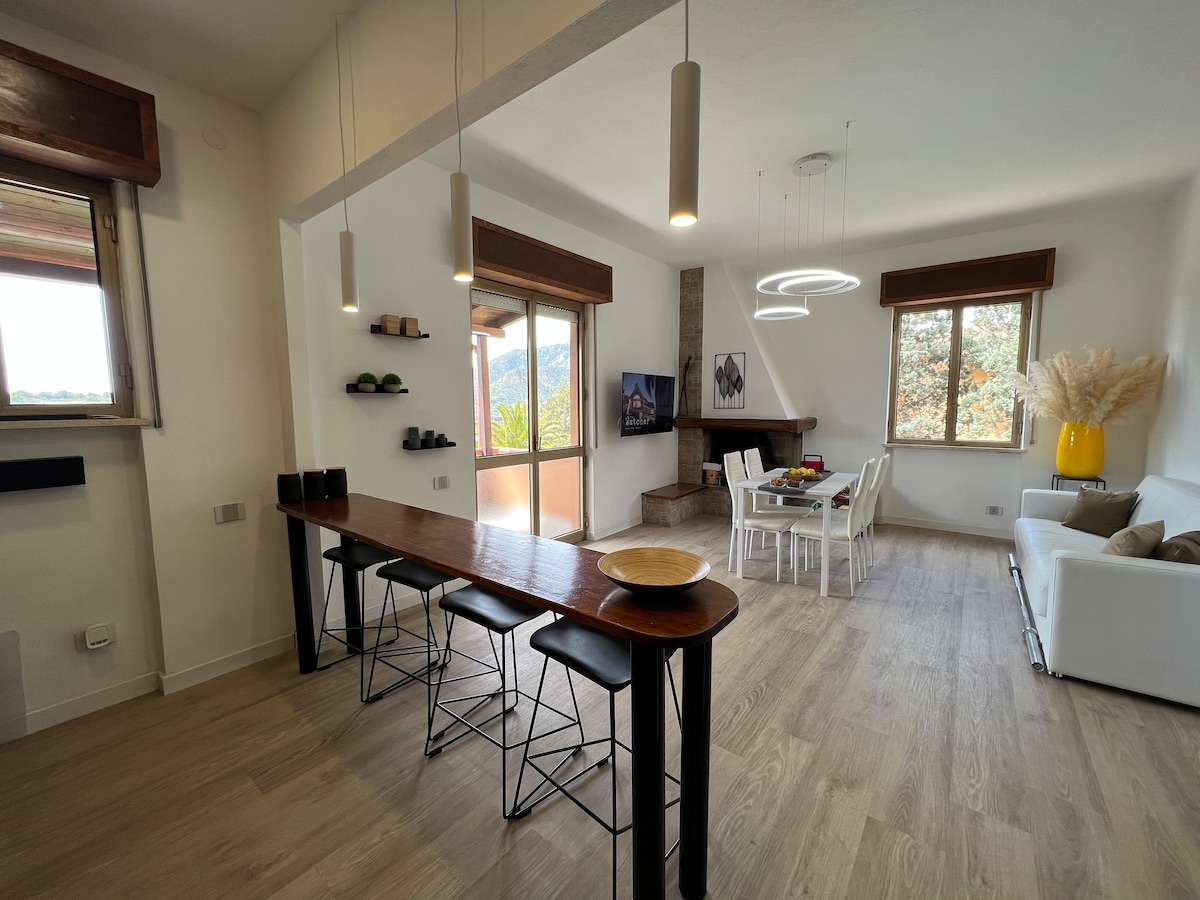 Een onvergetelijke ervaring in Villasimius. Geniet van een heel rustig, stijlvol appartement met loggia en een groot terras met een onvergetelijk allround uitzicht op de bergen. Het appartement met airconditioning heeft 2 slaapkamers, een volledig uitgeruste keuken (vaatwasser, magnetron, Nespresso-apparaat, koelkast en vriezer), een complete badkamer met regendouche, een gastentoilet, een wasmachine en een slaapbank in de woonkamer. De stranden van Simius & Campus liggen elk op 2,2 km afstand.