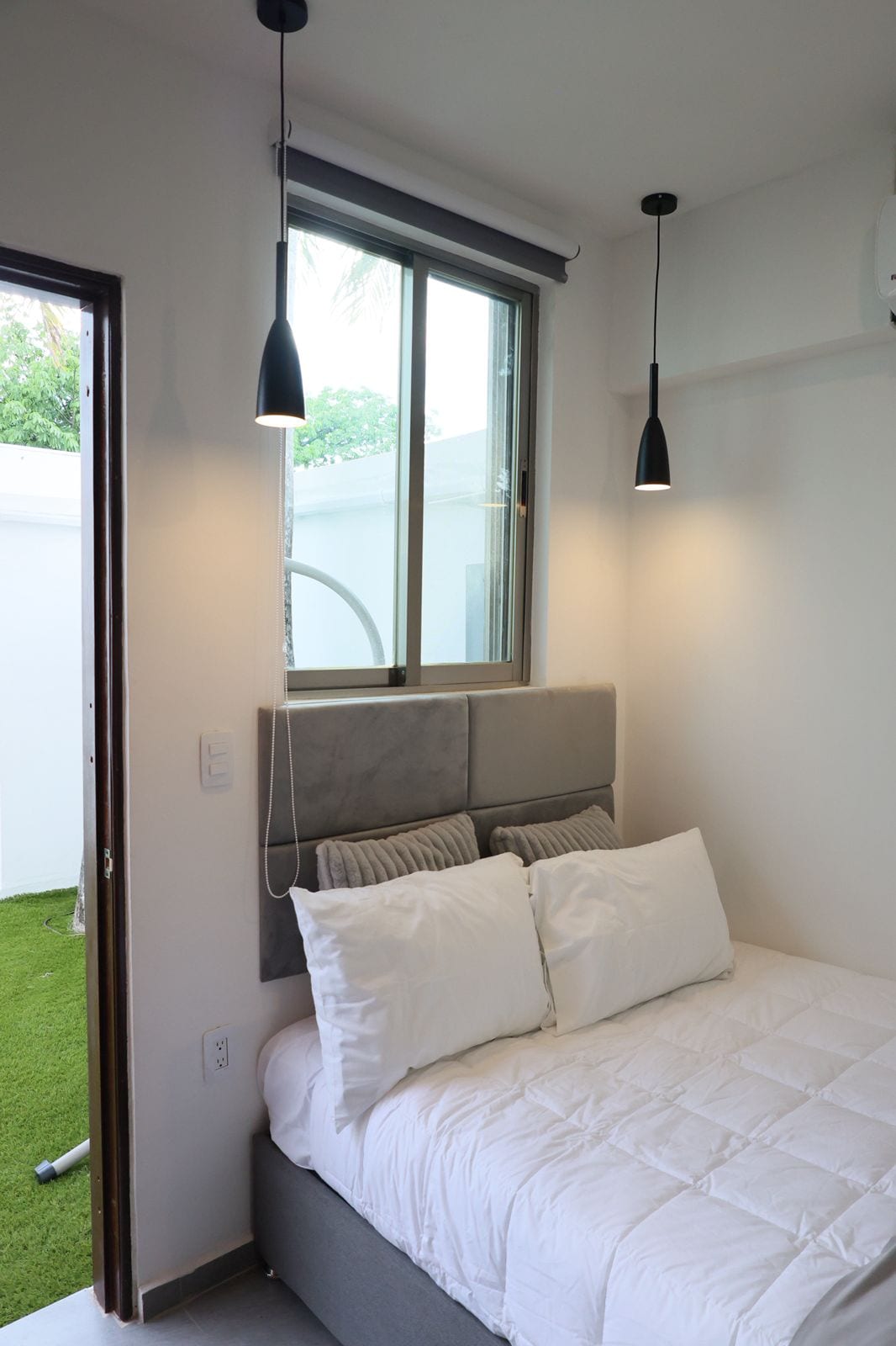 Prachtige studio voor één of twee personen(geen kinderen) in een centrum en rustige omgeving van Cancun. Comfortabel, licht en zeer mooi(nieuw). Het heeft alle basisvoorzieningen voor uw verblijf in Cancun: tv met kabel en Netflix, airconditioning, wifi, kitchenette met koelkast, zwembad, dak en meer voorzieningen. Een paar minuten lopen is er commerciële plein, restaurant, winkels en openbaar vervoer twee blokken te gaan naar het hotel-zone en de openbare stranden. Alles wat je nodig hebt om je thuis te voelen.