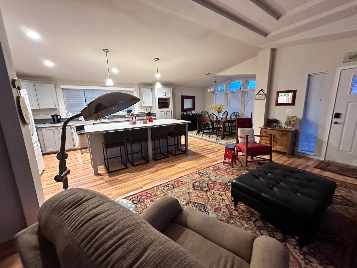 Nieuwe woning centraal gelegen in John Day Op loopafstand van Kam Wah Chung Museum, County Fairgrounds, lokale parken, wandelpaden en boodschappen doen. Het centrum ligt op 5-6 blokken van restaurants en meer. Huis is in rustige, weinig verkeer buurt met overdekte parkeergelegenheid buiten de straat. Primaire slaapkamer heeft een queensize bed en een eigen badkamer met instapdouche. Tweede slaapkamer heeft een volledig bed met badkamer direct aan de overkant van de gang. Volledig uitgeruste keuken, comfortabele woonkamer, bonus-tv-kamer en centrale HVAC.