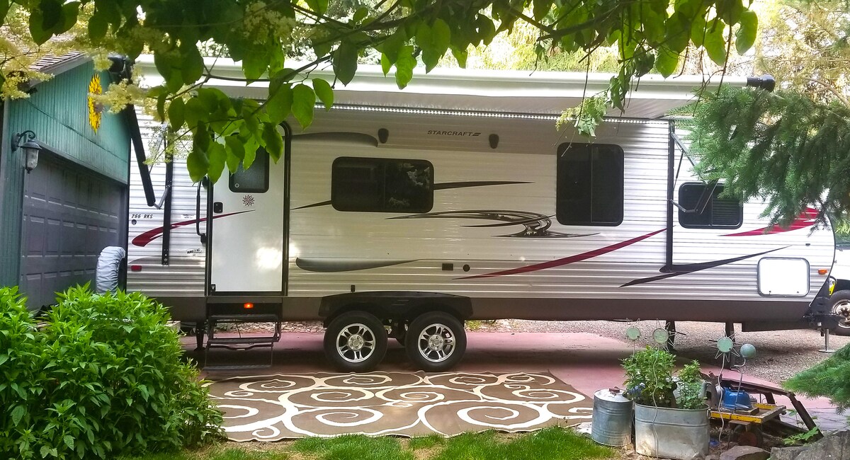 Avontuur wacht op je in het prachtige Idaho met zoveel te beleven! RV is gelegen in een mooie buurt met 1 parkeerplaats voor poort en straat beschikbaar. We zijn een paar blokken lopen naar een systeem van natuur-/fietspaden, snelle rit naar Lake Lowell voor paddleboarden en zwemmen, float Boise River (30 minuten rijden), ck out lokale mtn skigebied Bogus Basin voor bezienswaardigheden of hit mtn-fietspaden! Downtown Boise met verschillende restaurants, BSU-campus, dierentuin en Greenbelt met kilometerslange paden!
