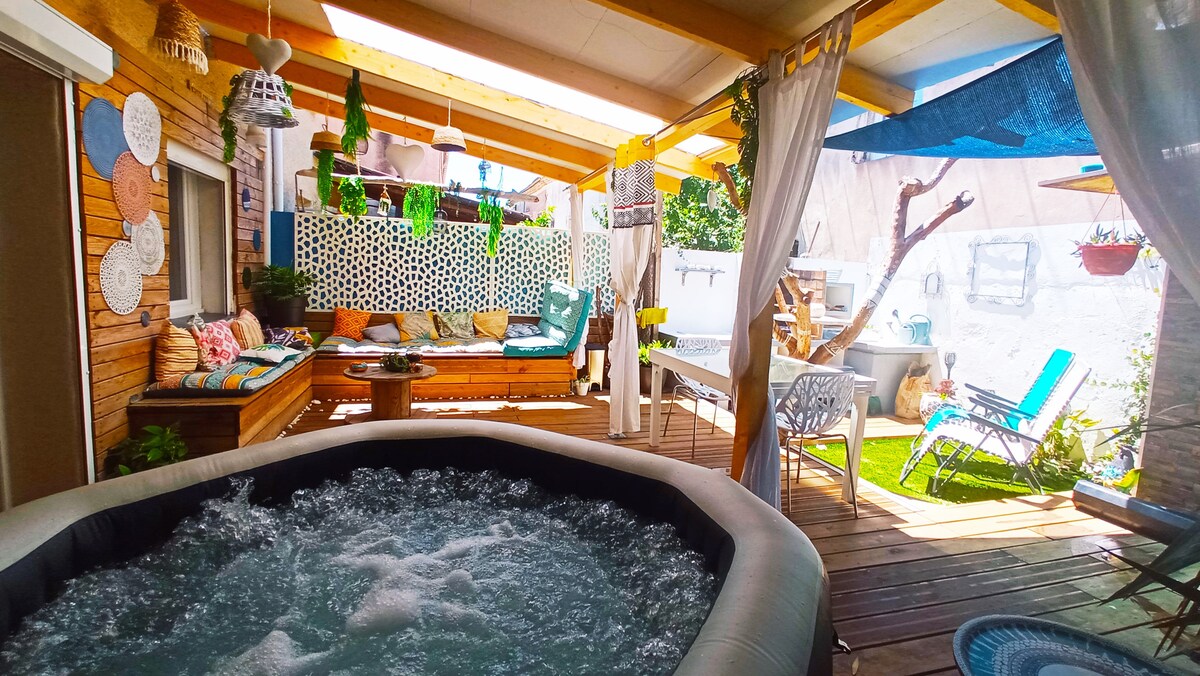Kom en ontdek 'Agath' Love ', je volledig uitgeruste romantische studio om een speciaal moment als koppel te delen in een bubbel van zoetheid Met zijn romantische inrichting, kaarsen, ingetogen sfeer, balneobad aan de voet van het bed, een vierzits buitenspa, een queensize bed, een groot overdekt terras, een uitgeruste keuken, een barbecue en een pooltafel.