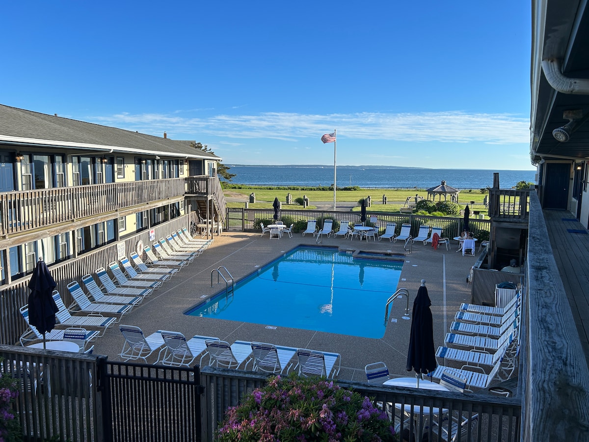 Discover a relaxing Cape Cod retreat at this cozy beachfront studio in Dennis Port. Located just across the road from the resort's main buildings, this efficiency unit is perfect for couples or small families, and also includes shared outdoor seating and picnic space. Nestled on a private stretch of Nantucket Sound, it offers direct beach access and is close to historic towns, outdoor adventures, and delicious seafood dining. Your ideal beach getaway awaits.