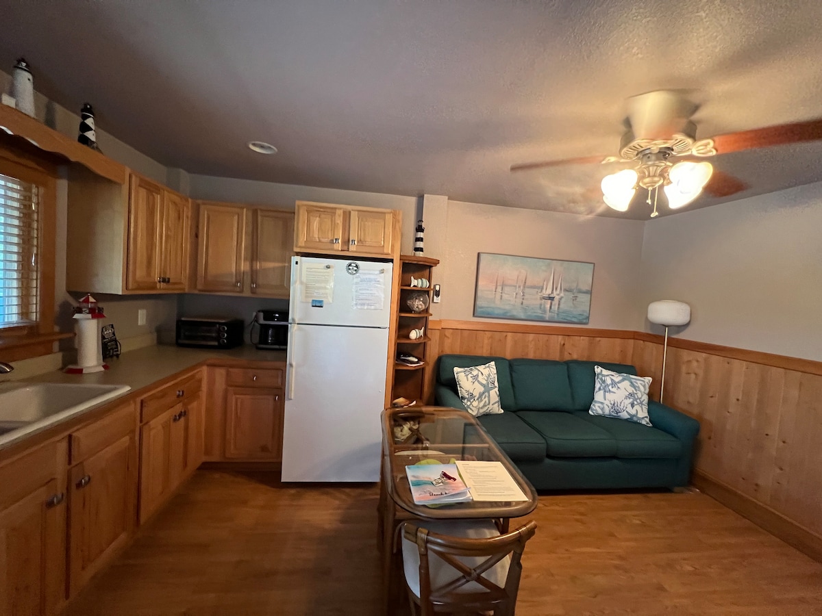 Dit charmante huisje op een steenworp afstand van de oceaan heeft veel karakter, oorspronkelijk gebouwd om een diner te zijn in 1948 is het gerenoveerd tot een charmante huurwoning waar je van kunt genieten! Dit kleine huisje is 810 vierkante voet, 1 kingsize slaapkamer en 2 xl twee eenpersoonsbedden in de stapelkamer, 1 queensize slaapbank in de zonnekamer, 1 bad, met een open woonkamer, eetkamer, keuken. De veranda is een favoriete plek voor ochtendkoffie of 's avonds happy hours!