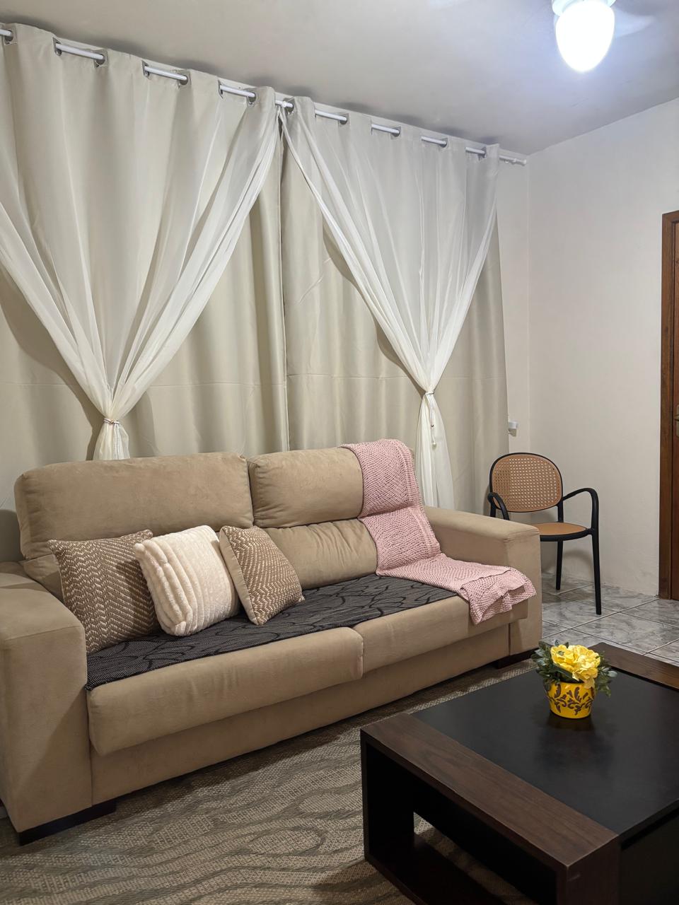 Lindo apartamento na região central de Montenegro. Perfeito para quem vem a trabalho ou lazer. Acomoda até 4 hóspedes com conforto. 1 quarto 1 banheiro Sala aconchegante Cozinha completa Lavanderia São 3 camas (1 de casal) + sofá-cama. Inclui roupas de cama e toalhas. Café da manhã fresquinho incluso. Wi-Fi, TV e ar-condicionado. Pátio fechado com monitoramento por câmeras. Bairro seguro, próximo a mercados, farmácias e academias. Será um prazer te receber.