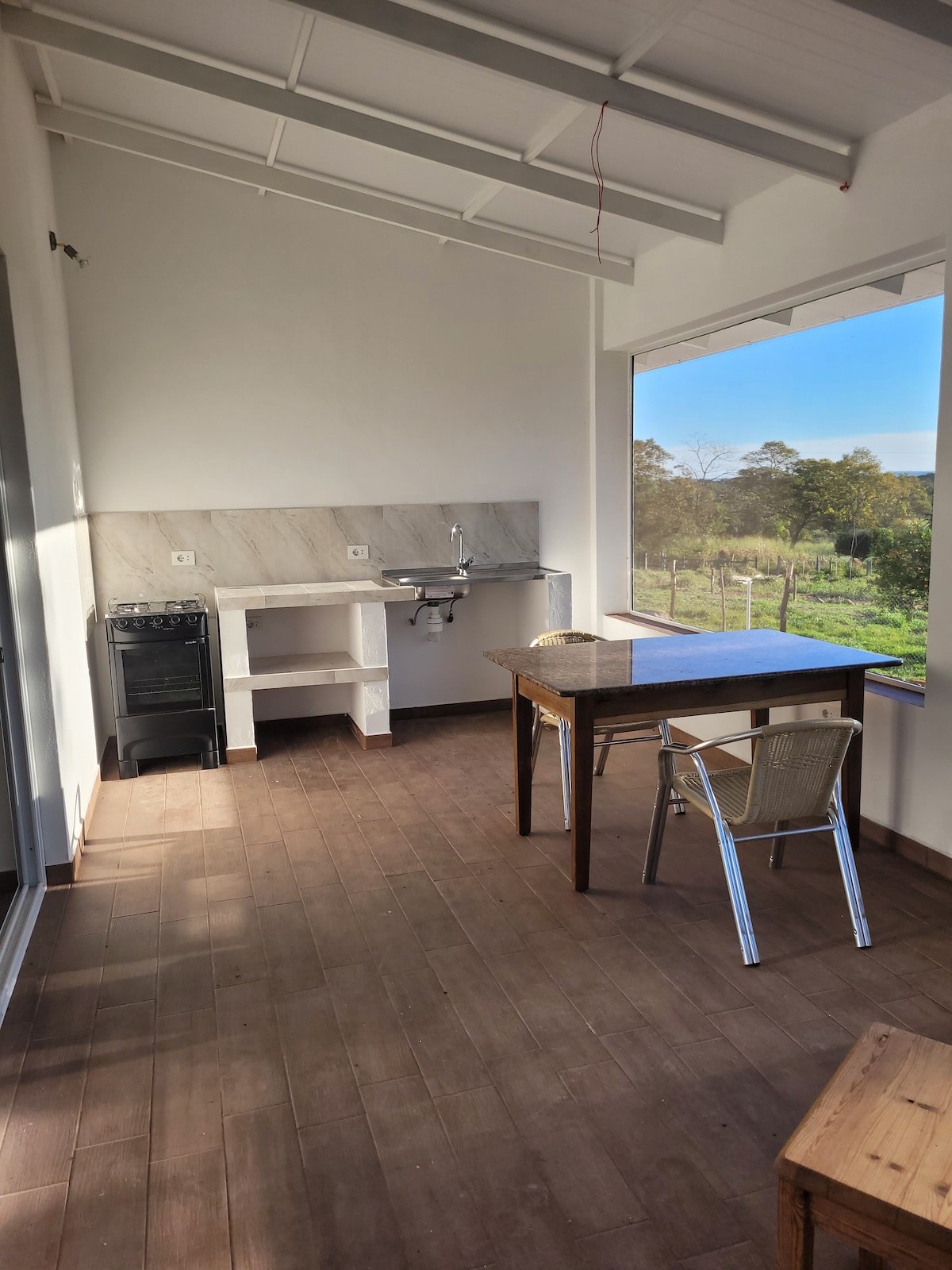 De accommodatie is 670 m2 en ligt in een omheinde buurt van 9 HA met een dicht bos met een kleine en kristallijne beek. De kamers hebben airconditioning, ventilatoren en 8 bedden van verschillende groottes van 080 tot 120 elk. De badkamer beschikt over een ligbad. De kleine keuken heeft alle benodigde benodigdheden. Het heeft een grote overdekte galerij met een tafel voor 12 personen. Het grillgedeelte heeft naast de tatakua en het zwembad ook een stenen tafel.