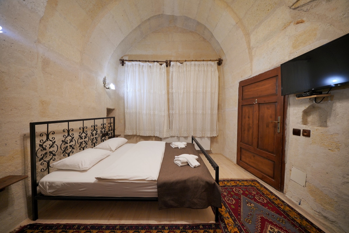 Onze unieke grotkamer heeft een jacuzzi, een zeer stijlvolle badkamer en een open haard. Je kamer is 90 vierkante meter groot. Het is een zeer grote kamer naar Cappadocia normen. Er zijn veel gemeenschappelijke ruimtes in het hele hotel. De deur opent naar de tuin. Het hotel heeft een restaurant met traditionele gerechten en terrassen waar je gebruik van kunt maken. Ons hotel heeft een flexibele structuur. Het is altijd ons genoegen om te reageren op de verzoeken van onze klanten. Aarzel niet om te vragen wat je nodig hebt.