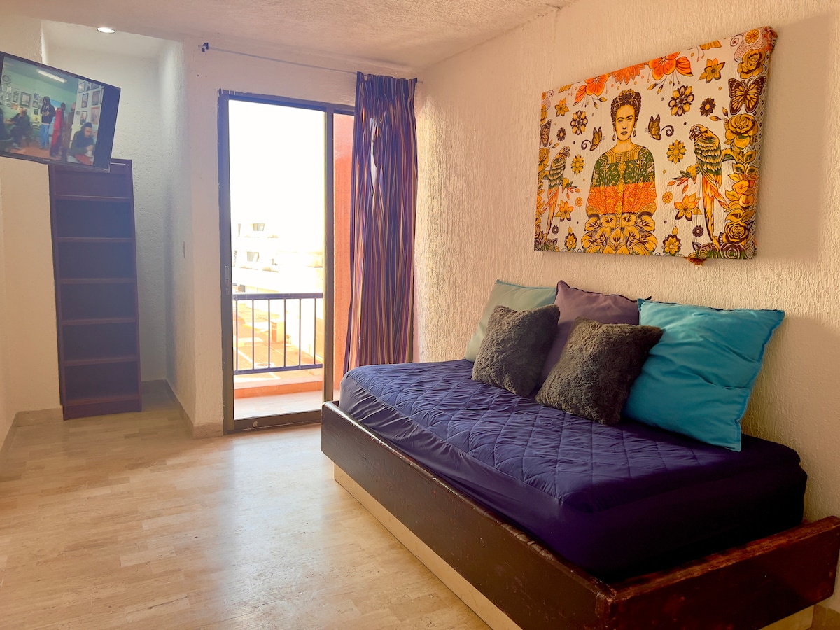 Appartement aan de voet van het strand, op de beste locatie in de hotelzone van Cancun. Op loopafstand van restaurants, winkelcentra, nachtclubs (COCOBONGO, MANDALA STRAND, enz.). De kamer is gelegen op de bovenste verdieping, in een hoek, met een spectaculair uitzicht op de zonsondergangen van Cancun, richting de Nichupte lagune en aan je linkerhand kun je genieten van het turquoise blauw van de Cancun zee. Ik raad het aan voor 2 of 3 personen, omdat de ruimte klein is. Max. 4, maar ze zullen zich krap voelen.