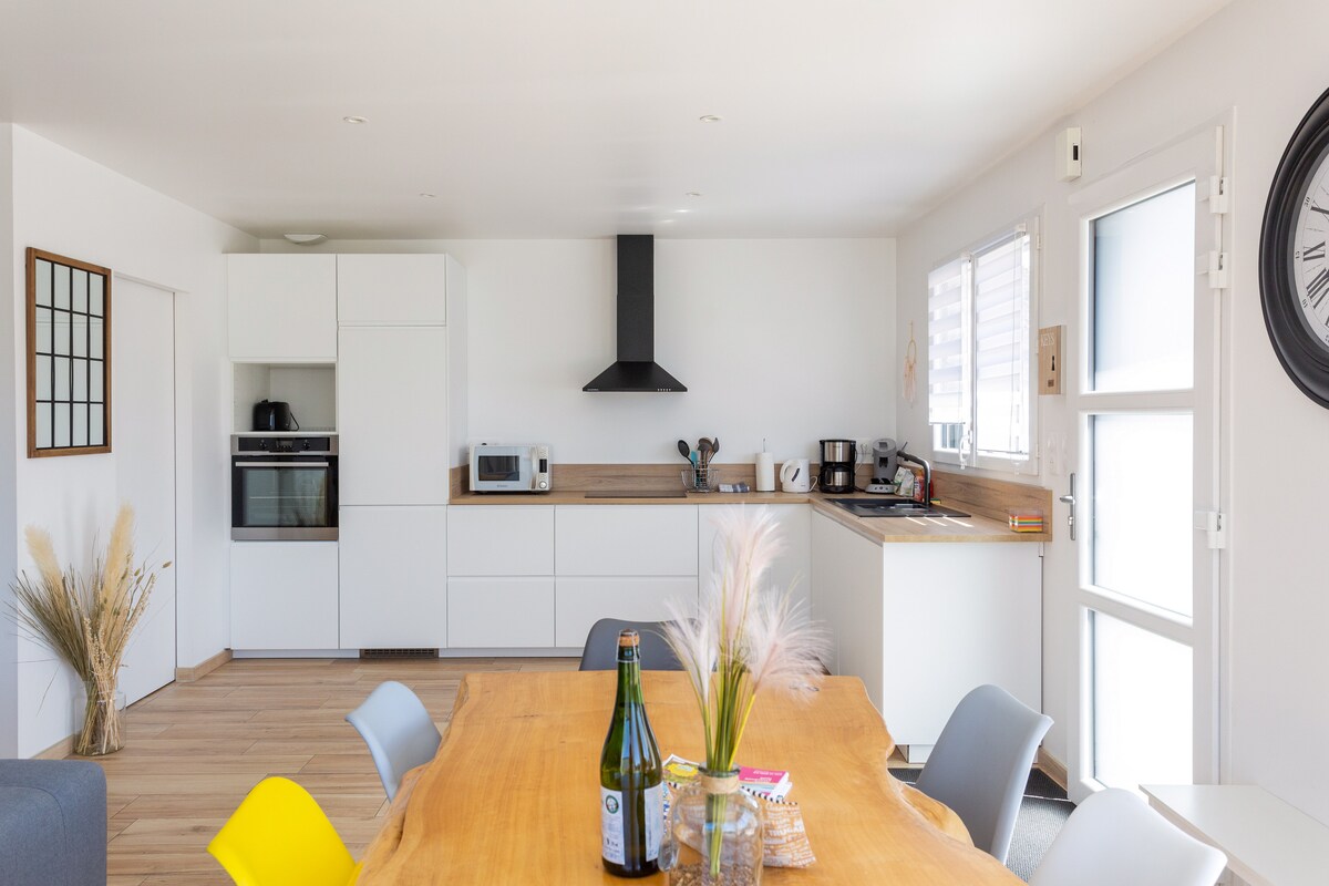 Huis uit de jaren 1920 volledig gerenoveerd en heeft een moderne Scandinavische stijl. Afgesloten tuin en beschut met uitzicht op 300 m2 op het zuidoosten. Ideale locatie op 200 m van het dorp en op 5' lopen van stranden en watersportcentrum. Absolute ontspanning! Het huis is officieel geclassificeerd door het ministerie van Toerisme. Dit is DE extra garantie dat u zich niet vergist in uw vakantie...
