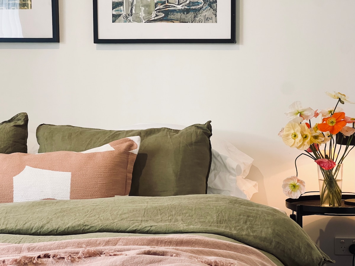 Geniet van een stijlvol verblijf in deze centraal gelegen studio. Deze appartementstudio is ideaal voor reizende werknemers of een stel dat op zoek is naar een korte vakantie in het hart van Orange. Een royale studio, met een aparte queensize slaapkamer met badkamer (met vloerverwarming) die leidt vanuit de volledige keuken, eethoek en woonkamer met speciaal bureau voor werknemers. De keuken is voorzien van een kookplaat, oven, vaatwasser, koffiezetapparaat, koffiezetapparaat, broodrooster, waterkoker, koelkast/ vriezer. Ontspan na een dag werken of sightseeing