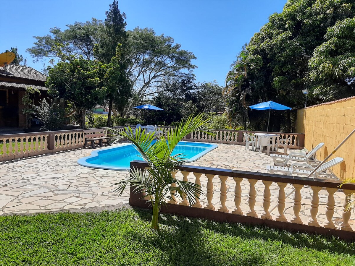 Welkom op de Recanto Alegria ranch! Onze ranch biedt een ruimte van rust en gezelligheid, zodat je weer in contact kunt komen met de natuur en speciale en onvergetelijke momenten kunt beleven. De ruimte heeft een zwembad, een complete barbecue, een terras met prachtig uitzicht en een grote en ruime tuin om familie en vrienden te verzamelen. Gelegen in het hart van de buurt, dicht bij het bar-restaurant en een minimarkt in de buurt. Natuur, comfort en ontspanning op één plek!