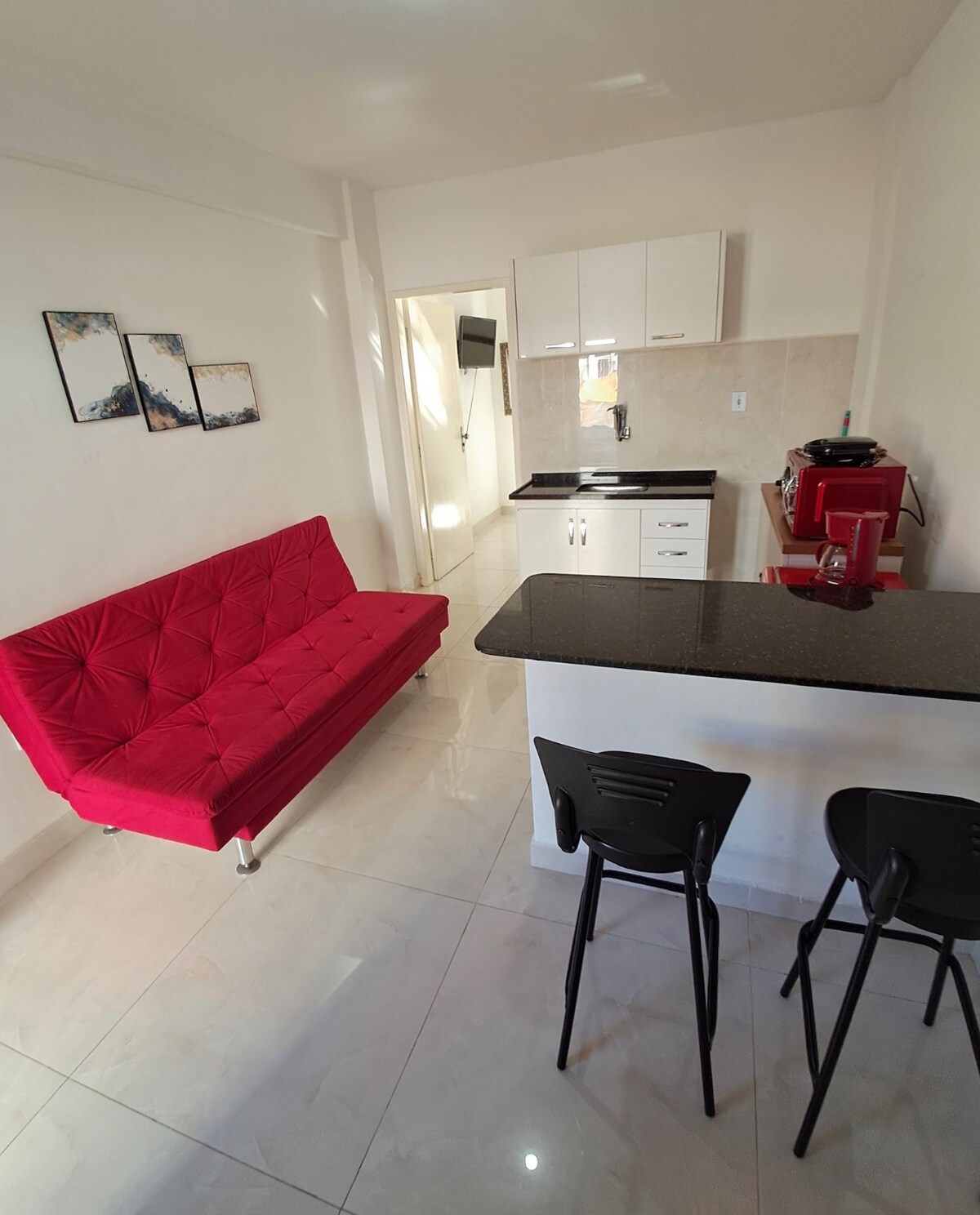 Keuken in loftstijl in het hart van de hoofdstad Capixaba, aan een traditionele straat met gemakkelijke toegang en dicht bij alles. De regio Historic Center heeft monumenten en toeristische bezienswaardigheden, zoals de Catedral de Vitória, Teatro Carlos Gomes en de twee paleizen van de overheid, een van hen een paar meter van de accommodatie. Het bestaat ook uit een bohemien plek, vooral in het weekend, met bars, snackbars en restaurants, evenals verschillende etablissementen: banken, supermarkten, winkels en openbare instanties.