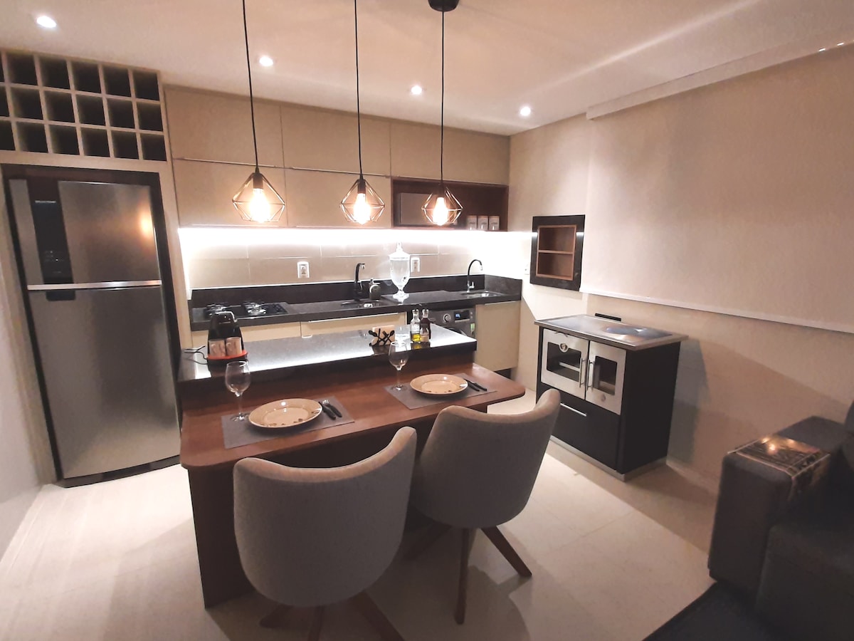 Appartement dacht allemaal aan een stel dat komt genieten van de Serra Gaúcha, of zelfs collega's die naar de verschillende beurzen in de regio komen. Dit appartement is goed gelegen in Centro de Bento Gonçalves, op de bovenste verdieping en heeft een uitstekende parkeerplaats op de begaande grond. De ruimte biedt: - airconditioning; - High-speed internet-wifi; - Smart-tv; - Haardroger; - Bad-, gezichts- en zeephanddoeken; - volledige keuken; - strijkijzer; OBS: niet roken en huisdier.
