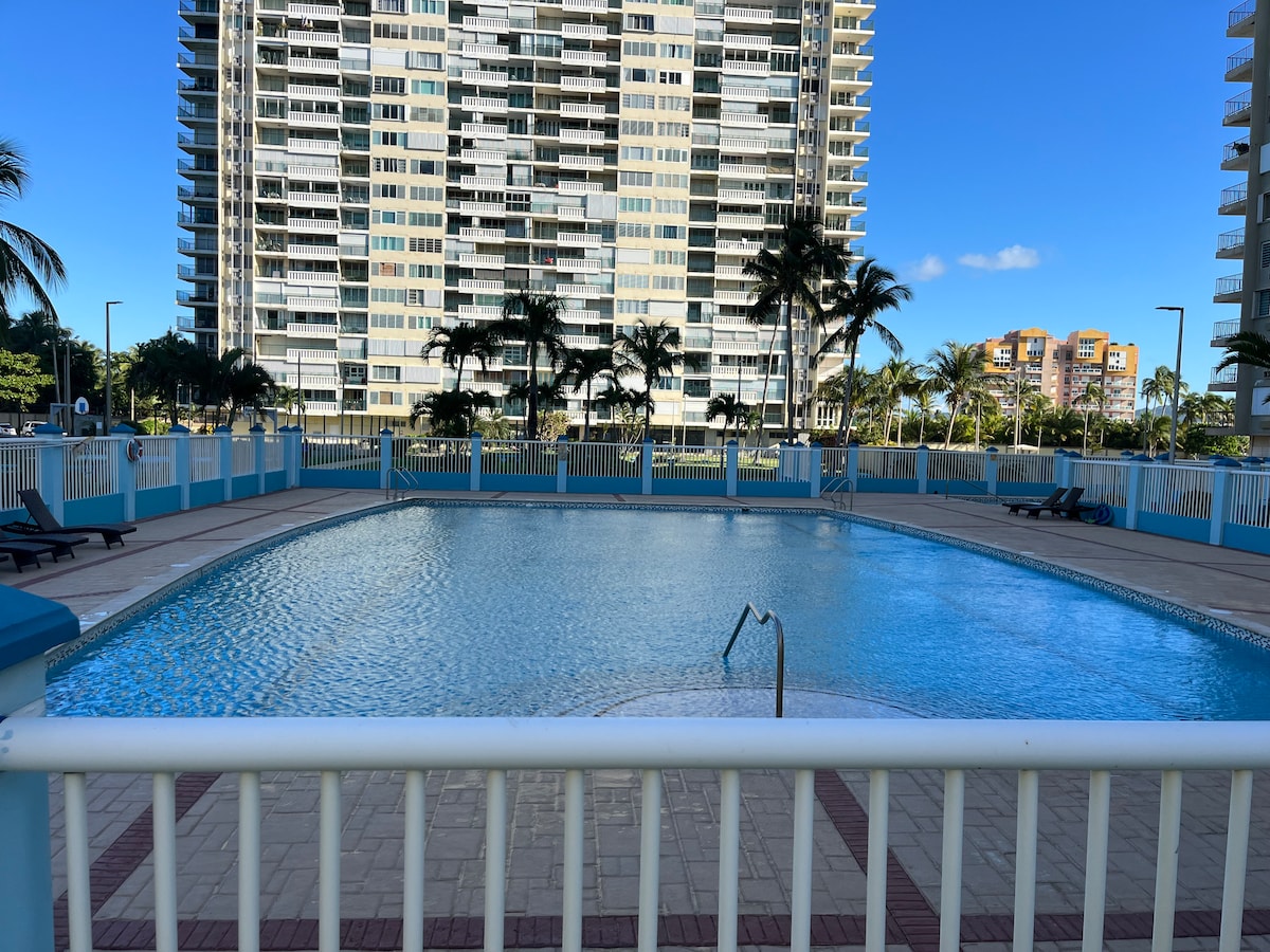 Welkom bij Estrada Apartments, op 5 minuten van de internationale luchthaven. Mooie studio op een steenworp afstand van een van de beste stranden van Isla Verde "Hubbie Beach" uitstekende restaurants, op een minuut van Walgreens apotheek en autoverhuur, en is net boven de beste sportbar met ontbijt, lunch en diner "Fumbis Sportbar" bevoorrechte locatie in Isla Verde, perfect voor je verblijf, voor 2 personen een queensize bed, airconditioning, zwembad en wasserette.