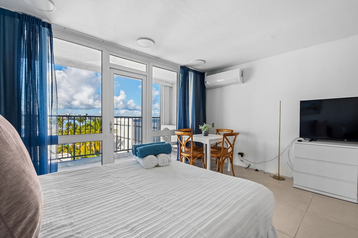 ❤Perfect voor koppels die op zoek zijn naar een romantische strandvakantie of een klein gezin met kinderen Kingsize bed, 50inch Smart TV (Roku) en sterke Wifi ✔Wereldberoemd strand van Isla Verde net buiten de deuren van de lobby ✔24/7 beveiliging & portier met gratis parkeergarage in de bovenste buurt van Puerto Rico ✔ Kitchenette met koelkast, magnetron en kookplaat ✦Condo @ the iconische ESJ Towers/Mare St Clair *Niet roken/feesten - strikt gehandhaafd!! * Ons zwembad is in 2022 permanent gesloten