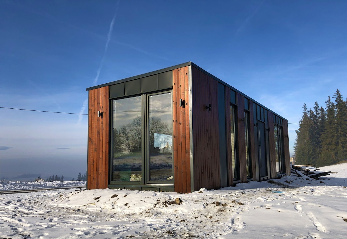 Geniet van je eerste woning in een bootcontainer in Slowakije. Met een uniek eilandsysteem heb je voldoende water en elektriciteit. Voor je gemak is er een volledig uitgeruste keuken in de container, een hoekbad, een bed met hoekramen, een Finse sauna, het had een terras met uitzicht op de Hoge Tatra, de King's Hola en het Slowaakse Paradijs. Smart TV, Wifi, koelkast met minibar is vanzelfsprekend. In de zomermaanden brengen wij u een aanbod van elektrische fietsen. Accommodatie is voor 2 personen.