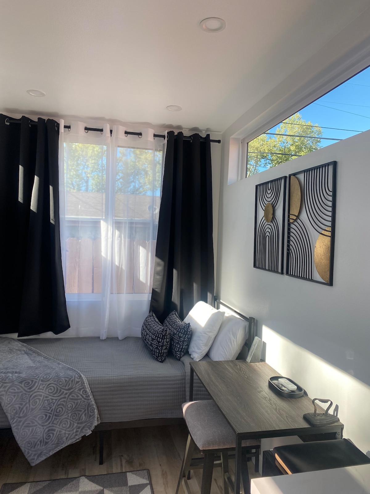 Smaakvol ontworpen aangrenzende gastsuite in de Vista-buurt heeft een eigen ingang op de begane grond van onze aangepaste woning uit het midden van de eeuw. Gasten zullen genieten van een grote studio met twee queensize bedden, een kitchenette en een eigen badkamer. Deze gevestigde buurt biedt gemakkelijke toegang tot de I-80 en 780, Hwy 29 & 37, het centrum van Vallejo en de veerbootterminal die dagelijks SF bedient. De wijnmakerijen van Suisun, Napa en Sonoma Valley liggen op een klein stukje rijden. En het schilderachtige stadje Benicia is op circa 10 minuten.