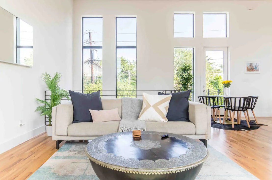 Get the best of urban living in this tucked away luxury townhouse! Enjoy everything from cooking your heart out in the fully equipped luxury kitchen, to kicking back in front of the 86” TV (YouTube TV, Netflix, Disney+), or just simply enjoy a cocktail on the back patio! Luxury linens (1200 thread-count sheets, RH towels, amazing mattresses), well equipped bathrooms, walk-in closet, etc. If business travel is your game, enjoy high speed WiFi and a full desk for your workspace!
